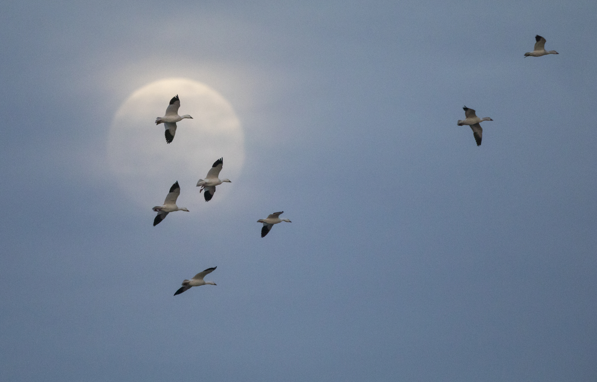 Small groups of swans and geese dotted the sky so I tried to capture them flying across the moon.