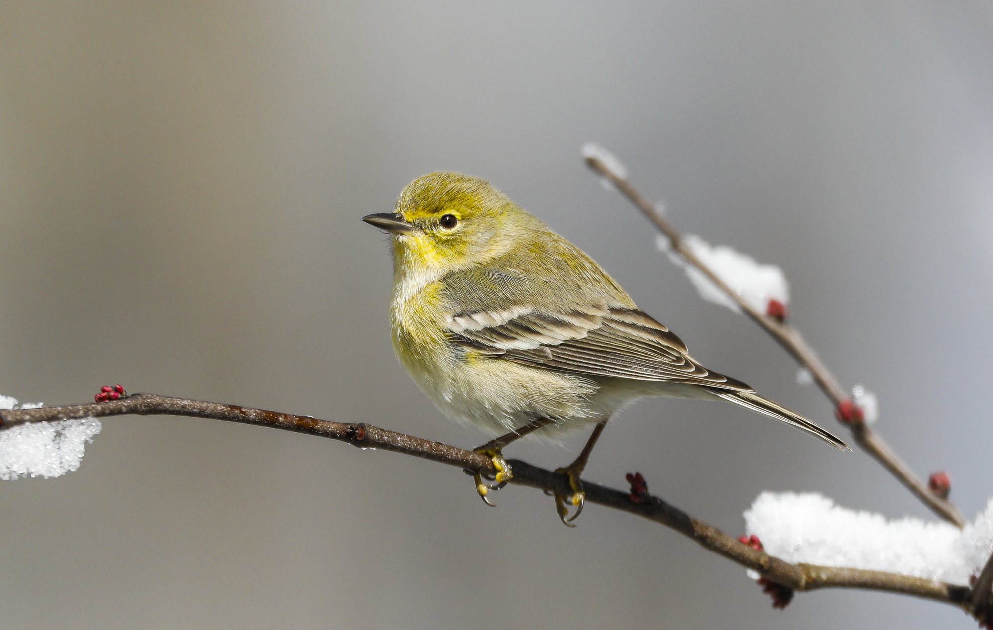 The most abundant birds I saw around the feeding station were pine warblers. They are the most common warbler we see in this area in winter (most warblers migrate out of our area to warmer climates). They can be found at both seed feeders (another unusual trait for a warbler) and suet (the latter is the preferred feeder here). They tended to come into the feeders in groups (typical behavior of winter feeding flocks) and exhibited quite a bit of aggressive interactions at times. I never managed to grab an image as a pair engaged in their brief battles where they fly up against one another, lock beaks, and spiral downward before releasing and chasing one another. I guess it is always good to have higher goals in life…