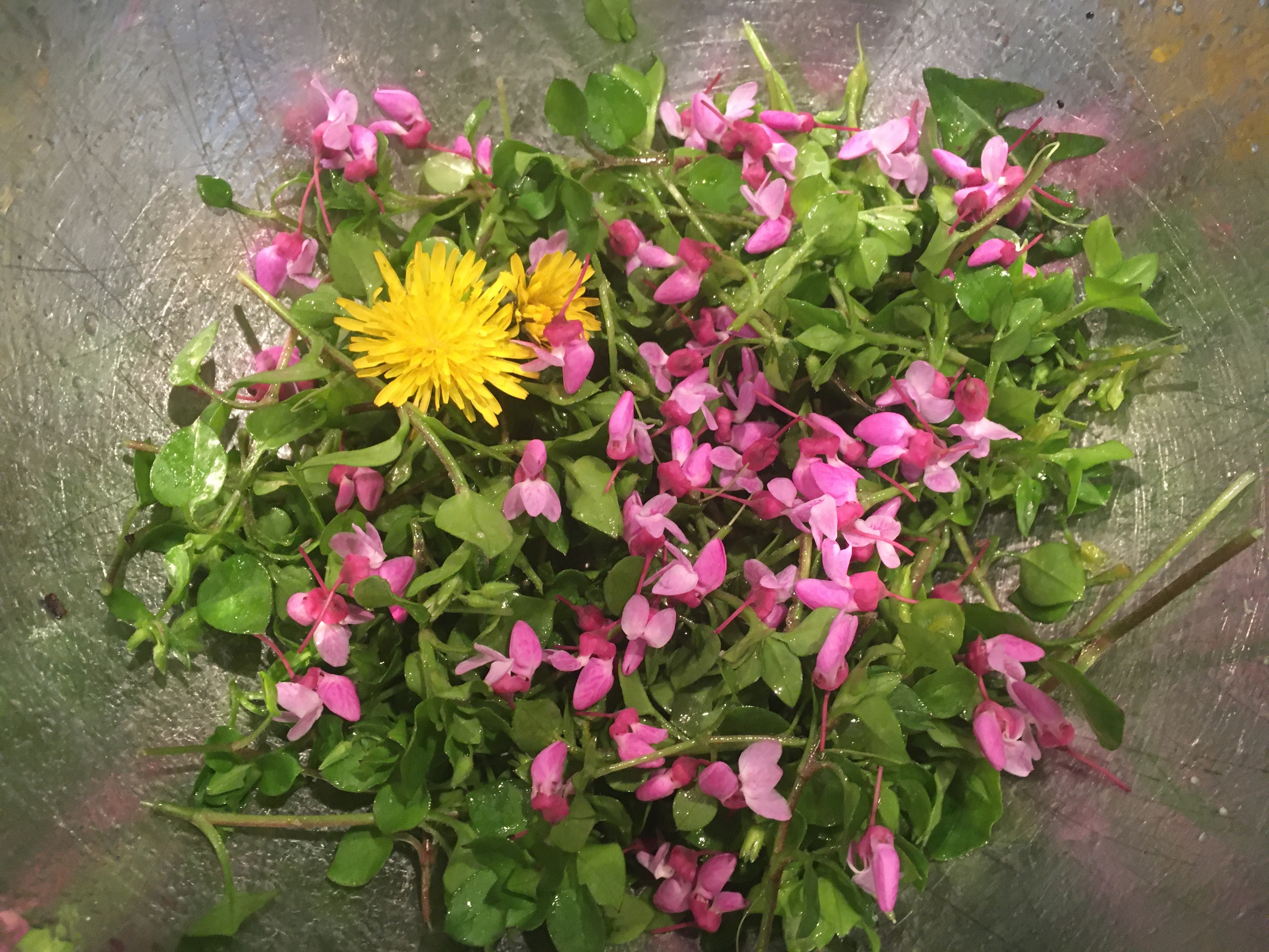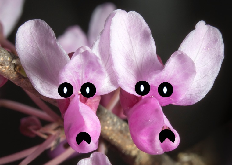 After watching the birds squeeze some of the flowers, I tried a couple to see if there was abundant nectar, but could not really tell anything definitive, other than the flower itself is tasty. The other thing I noticed when I looked closely was how the tiny irregular flowers look a lot like excited, big-nosed dogs with large ears. Maybe its just the self-isolation talking….