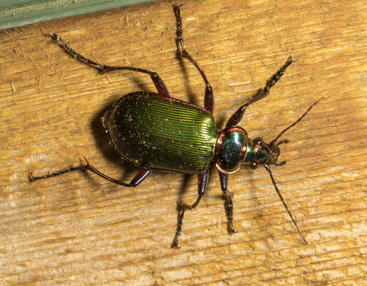 Several noisy cicadas (Neotibicen sp.) showed up last nightGrapevine Beetle, Pelidnota punctataThe formidable-looking Brown Prionid Beetle, Orthosoma brunneumSeveral species of longhorned beetles showed up, including this Carolina Pine Sawyer, Monochamus carolinensisA large White Oak Borer, Goes tigrinusAnother huge Eastern Hercules Beetle, Dynastes tityus, male made an appearance. These guys are like small tanks!The fastest (and second largest) beetle of the night was this Fiery Searcher Beetle, Calosoma scrutator. These are in the caterpillar hunter group of beetles and can produce a strong musky odor and a painful bite if mishandled. Adults can live up to three years and can consume hundreds of caterpillars (including tent caterpillars and gypsy moth larvae) in their lifetime