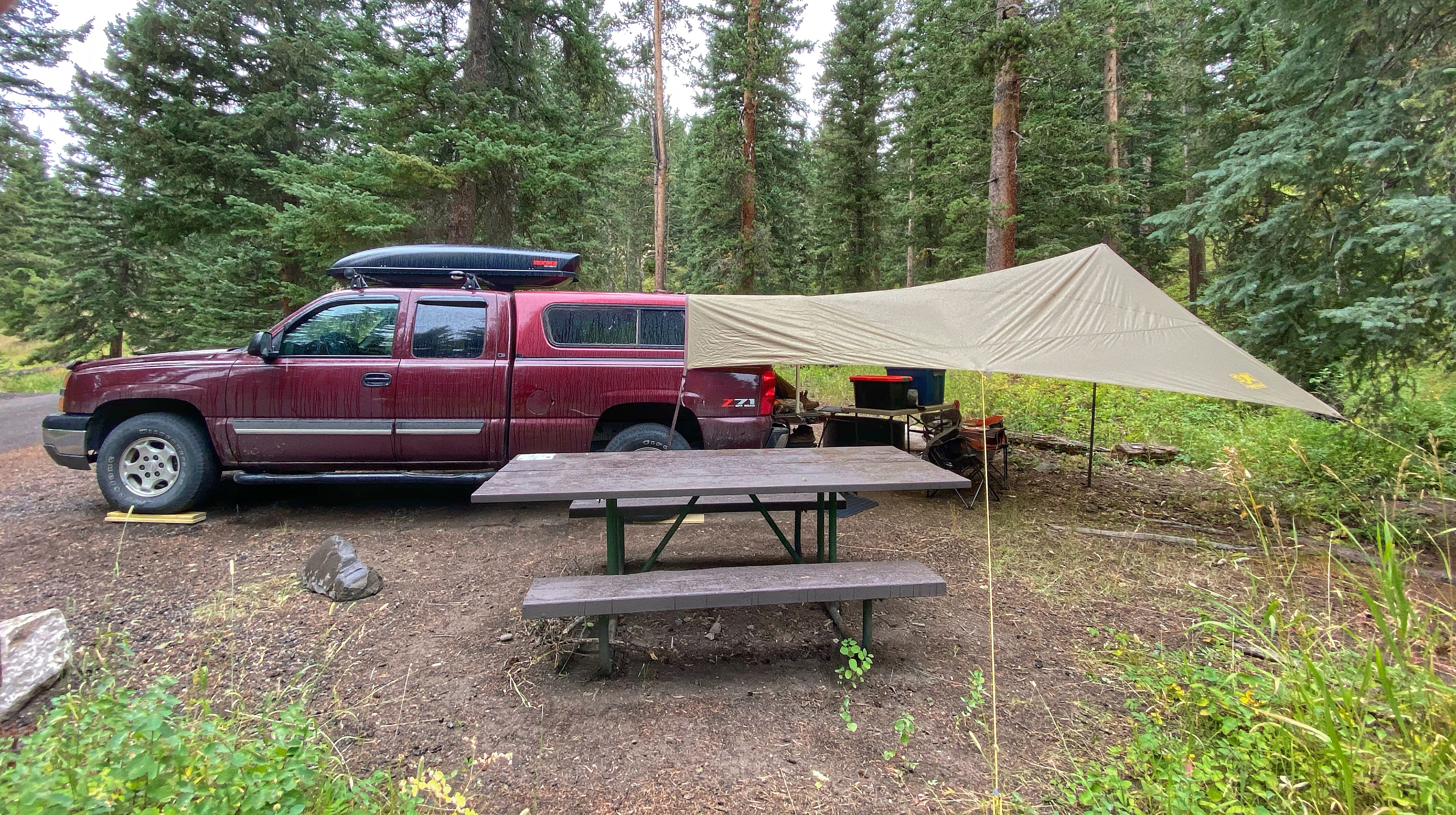 Sunday afternoon was hot, as hot as it gets in Yellowstone. At 6 pm it was 88 degrees. The next day, with the prediction calling for falling temperatures and snow, we headed to camp early to set up and wait out the storm. By 6 pm Monday, the temperature was 38 degrees and snow and sleet was falling.