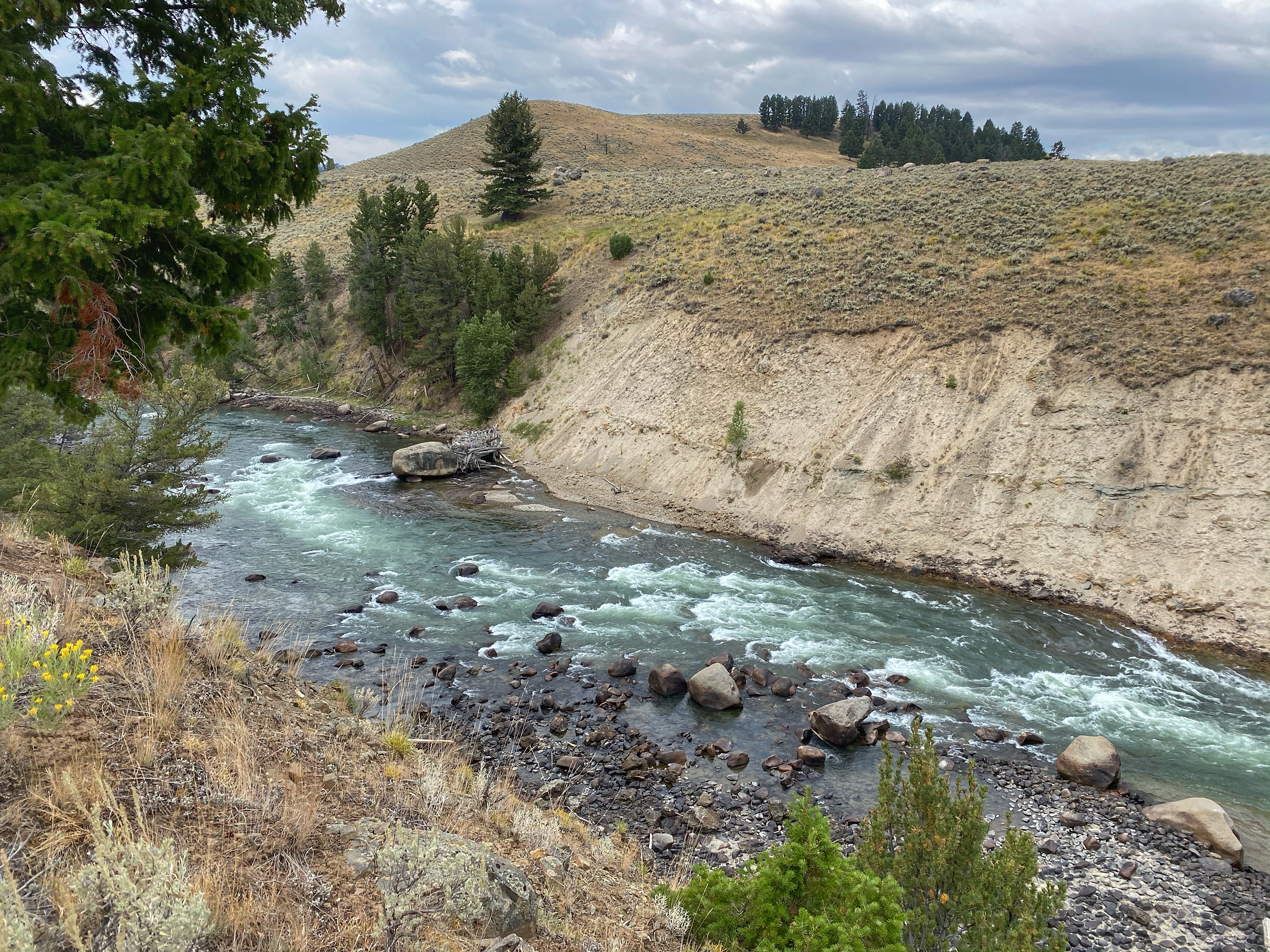 Our first couple of days in the park were spent driving through Lamar Valley and Little America, watching wildlife (bison herds, sandhill cranes, pronghorn, and wolves). We visited (socially distancing) our friends in Gardiner and Silver Gate and did a couple of short hikes. The park was as crowded as we have ever seen it, with huge groups of wolf watchers out in Lamar and Slough Creek (and the wolves were very cooperative).