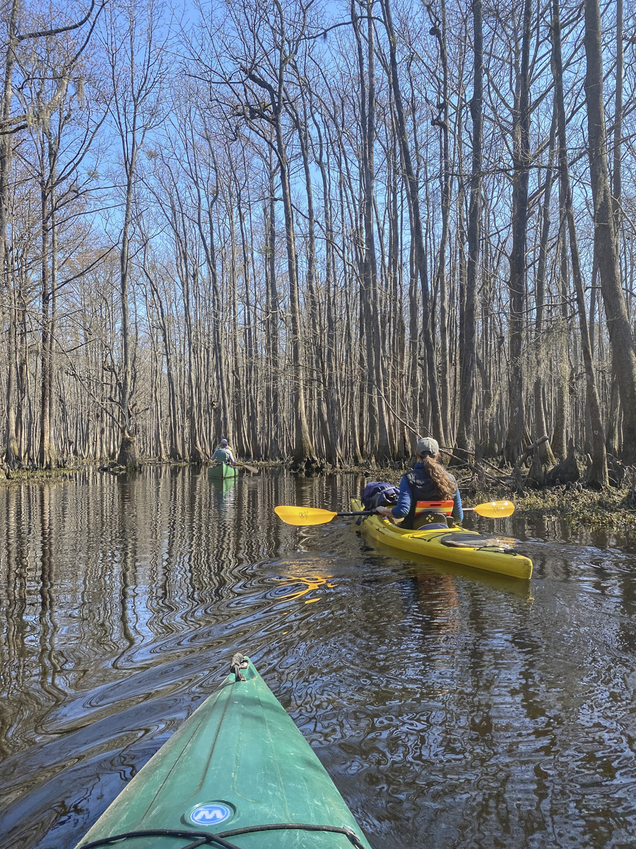 I contacted our friends, Floyd and Signa, that live just outside the park, to see if they wanted to paddle with us on Wednesday. They are some of the best naturalists I know and certainly know the millpond better than anyone (Floyd was a ranger there for many years). They offered to take us up Lassiter Swamp to “the big trees”, a scattered group of Bald Cypress trees that are hundreds of years old and tower above the rest of the swamp forest – heck yeah!