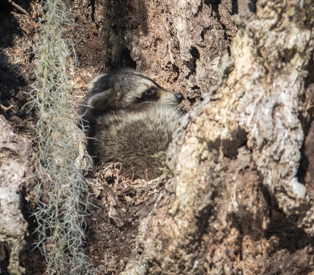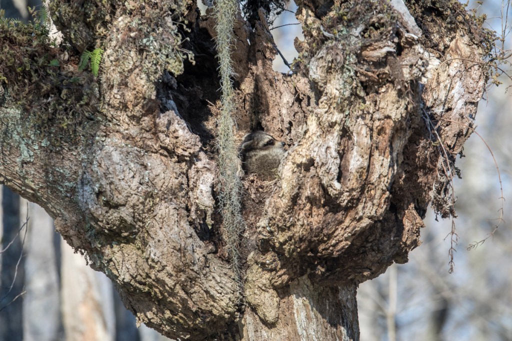 I have always loved Lassiter Swamp for its solitude and abundance of wildlife. And this trip provided both. As we paddled around one bend, Melissa said, There’s a Raccoon in that tree. I looked, but didn’t see it at first. It was curled up inside a giant gnarl on a gum tree. We were all impressed she spotted it.