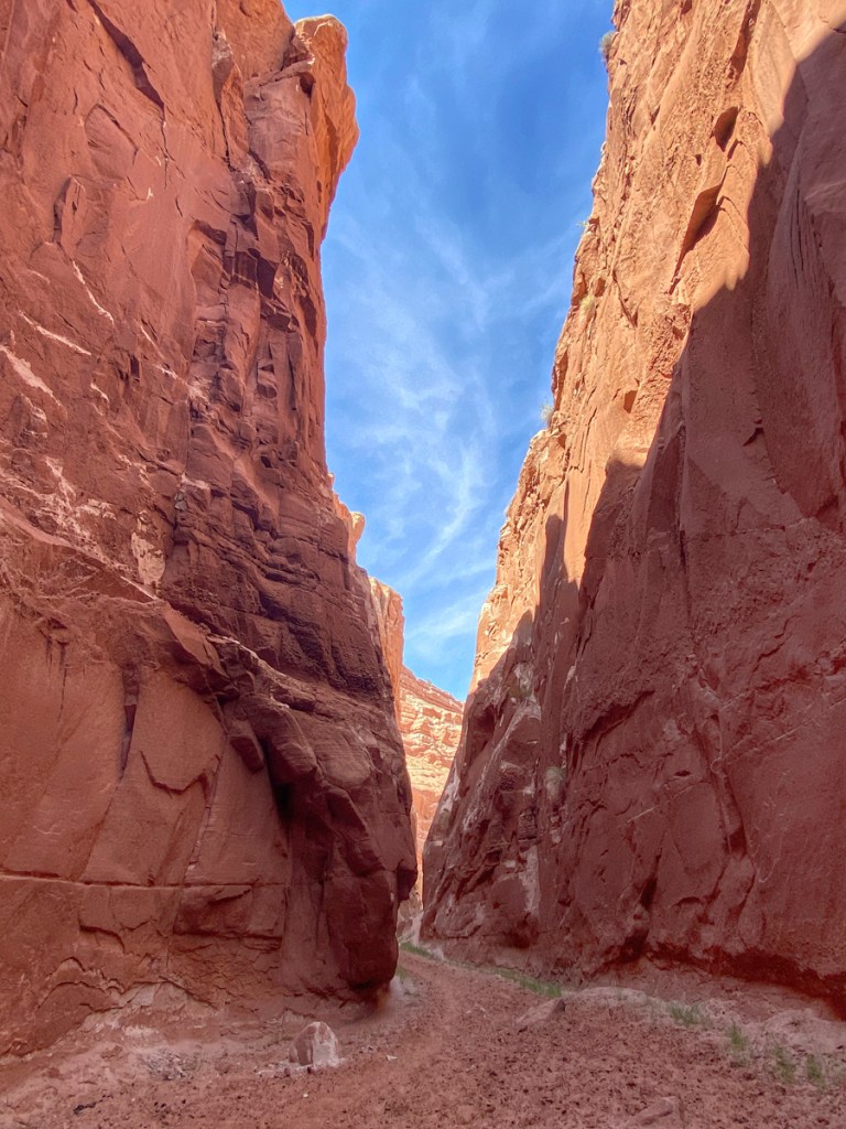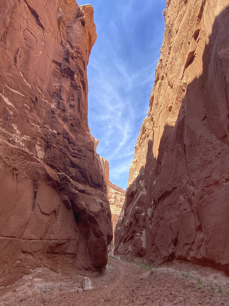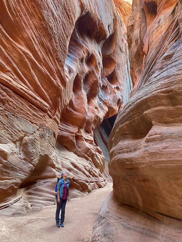 We hiked at least a couple more miles from the juncture, taking in the magic of this place and marveling at how such a feature can form. There are an average of 7 or 8 flash floods through the canyon each year, typically in July and August, that can send walls of water as high as 100 feet through the narrow canyons, so hikers are advised to check the weather before going and to not hike if rain is predicted anywhere in the region. At times, you may have to walk through water or mud, but conditions were very dry when we hiked through.