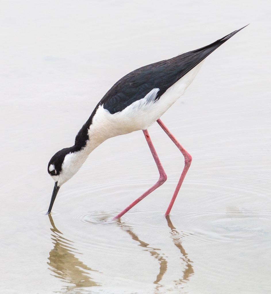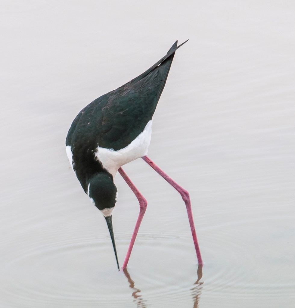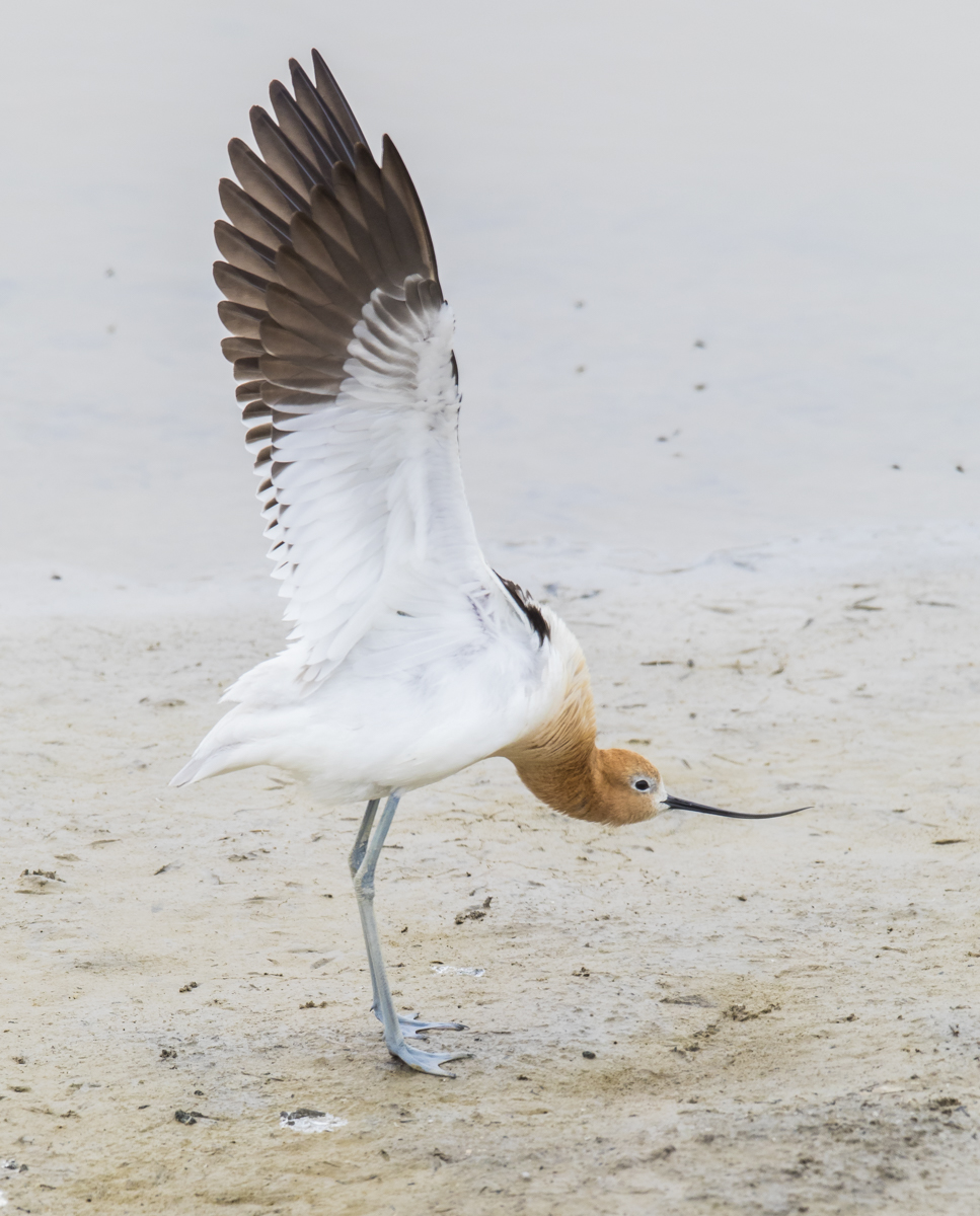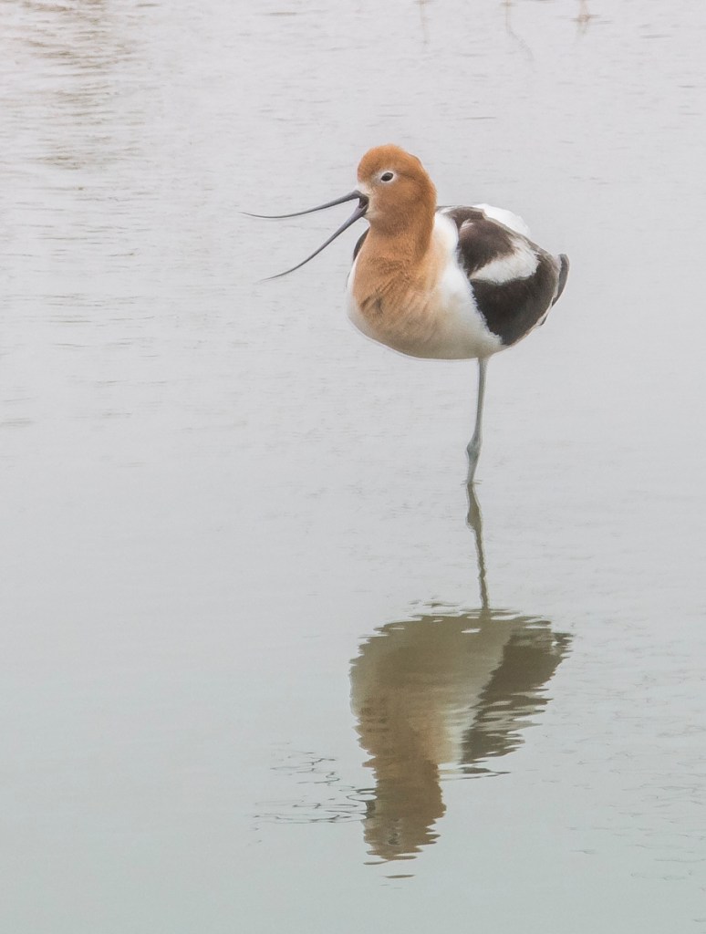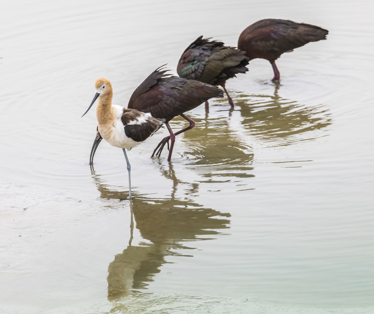Two species I particularly hoped to see were American Avocets and Black-necked Stilts, both of which nest on the refuge. At the refuge entrance, an American Avocet obliged and was feeding right next to the road at a boat ramp. Birds of the World Online discusses the meanings of the names for this beauty – the generic name, Recurvirostra, comes from the Avocet’s long recurved, or up-turned bill. The name Avocet is from the Italian avosetta, which means ‘graceful bird’.