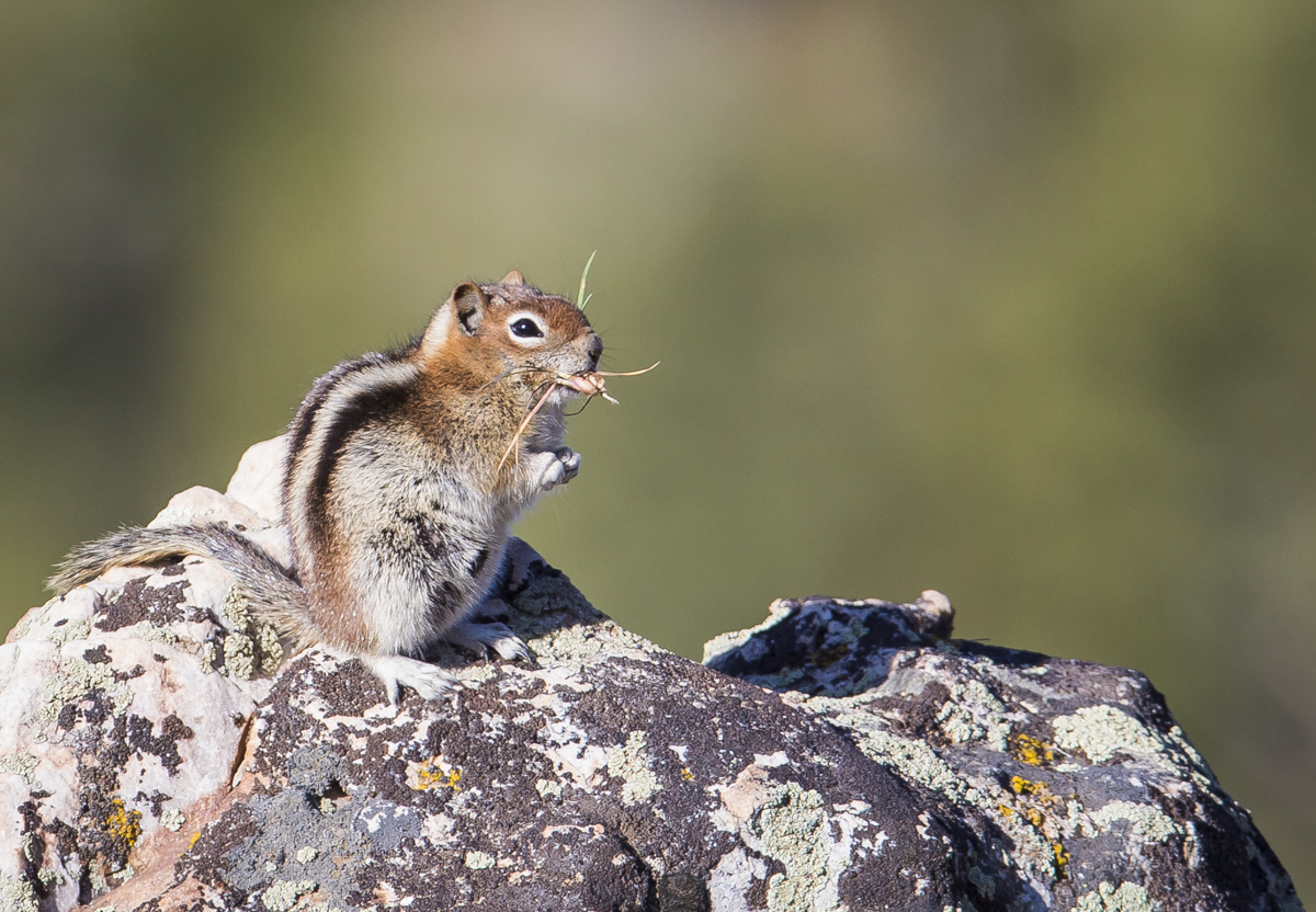 We checked a couple of spots off the Mirror Lake Hwy before picking a relatively open site at the edge of a small drop-off with distant views of mountains. The rocky ledge was home to a few ground squirrels and I managed to convince them I was harmless by sitting still for many minutes.