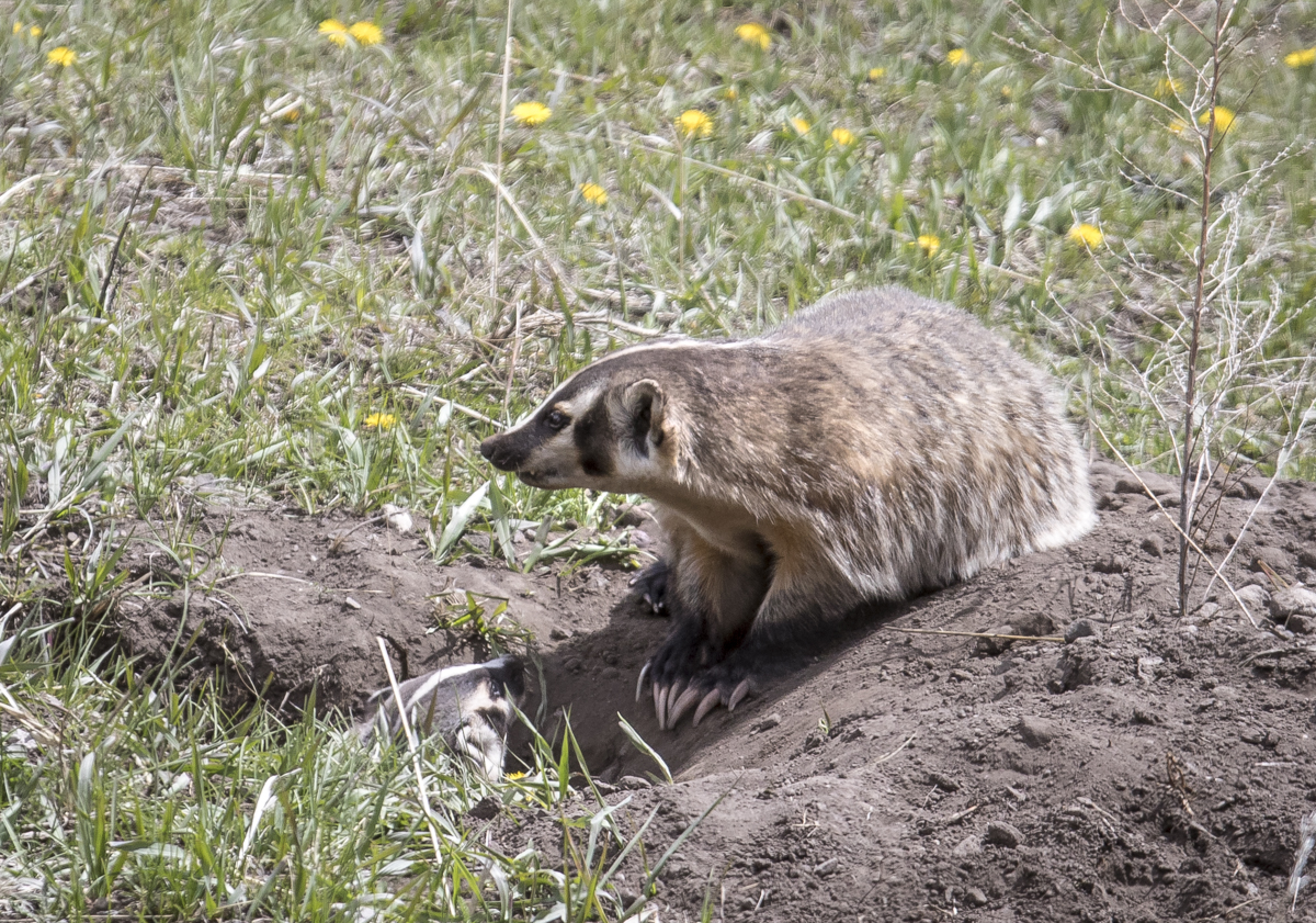Badger den in Lamar Valley – just look at those claws on the adult! (photo by Melissa Dowland)
