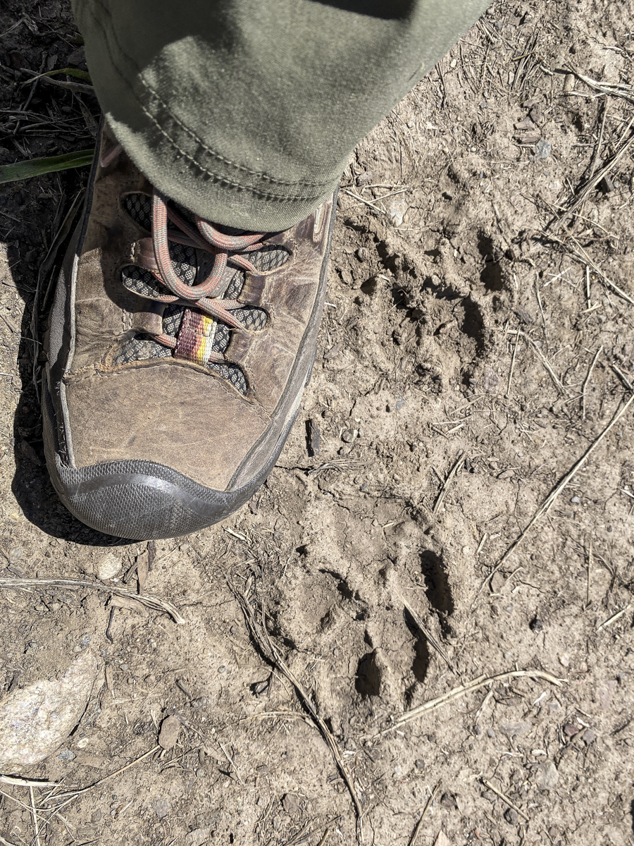 This is the type of image you get when you don’t have time to wait an hour or more for the critters to stand up and move around after a big breakfast, but we needed to move on. One of our highlights was a drive down a bumpy gravel road to Spalding Bay on Jackson Lake. Near the end of that road was a sharp curve with a pullout. A path up a swale seemed to lead to a potential nice view of the mountains so off we went. Elk scat was abundant and we soon found ourselves going to that next hill top to take a look. There, we saw a small pond and heard calling Boreal Chorus Frogs, so, naturally, we had to walk a bit further.