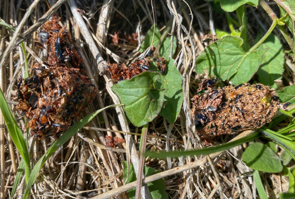 Melissa then suggested we should go look for the pellet (this is how truly nerdy we are, in case you didn’t know). We found a couple of pellets at this post indicating it is an often used perch. Their diet is mainly made up of insects (it looked like a lot of beetles), and small vertebrates like lizards and mice.