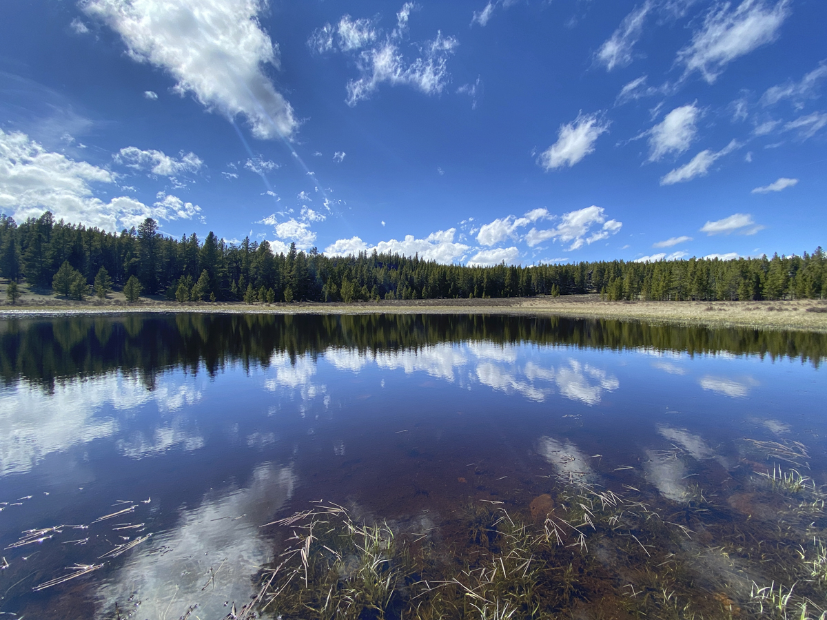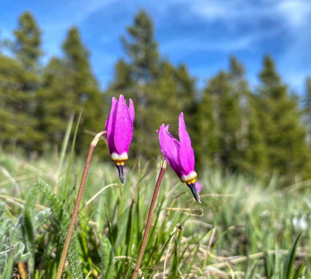 After driving a couple of roads that didn’t quite satisfy us, Melissa found a route with open meadows, streams, some ponds, and potential views of high mountains in the distance. When we pulled into the area, we knew this was it. We passed only a few RVs on a long stretch of dirt road with patches of conifers, open grasslands, and plenty of beaver ponds and creeks. With a strong wind blowing, we pulled into the lee side of a forest grove to set up camp. The meadow was covered in wildflowers and we soon found ourselves on the ground taking a closer look.