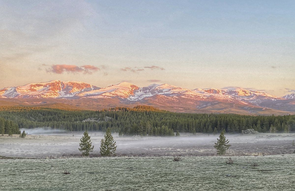 I steered toward one of our favorite national forests in the Bighorn Mountains. We camped there on our last two trips and have been very pleased with the number and variety of camping options. We hoped to camp in a site from our first extended truck camping trip last year, one along a small stream on a rocky outcrop in a high meadow. As we drove through, we soon realized things were a bit different now as snow still covered much of the slopes at this elevation. Indeed, the road to that campsite was closed due to deep snow, so we proceeded down in elevation looking for drier ground.