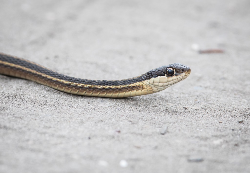 After the bruin hello, I continued on toward the north shore of Pungo Lake. This time of year I always stop the vehicle and scope far down the road ahead of me to see if I see any sticks moving in the road – snakes. As soon as I headed down West Lake Rd., I saw a skinny twig move. I rushed up to it and was pleased to see an Eastern Ribbon Snake. This species is usually found near water (this one was crossing from a canal to a large marshy area) and feed on small fish and amphibians.