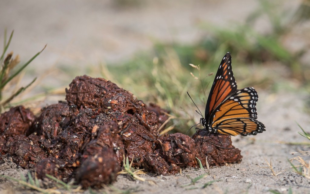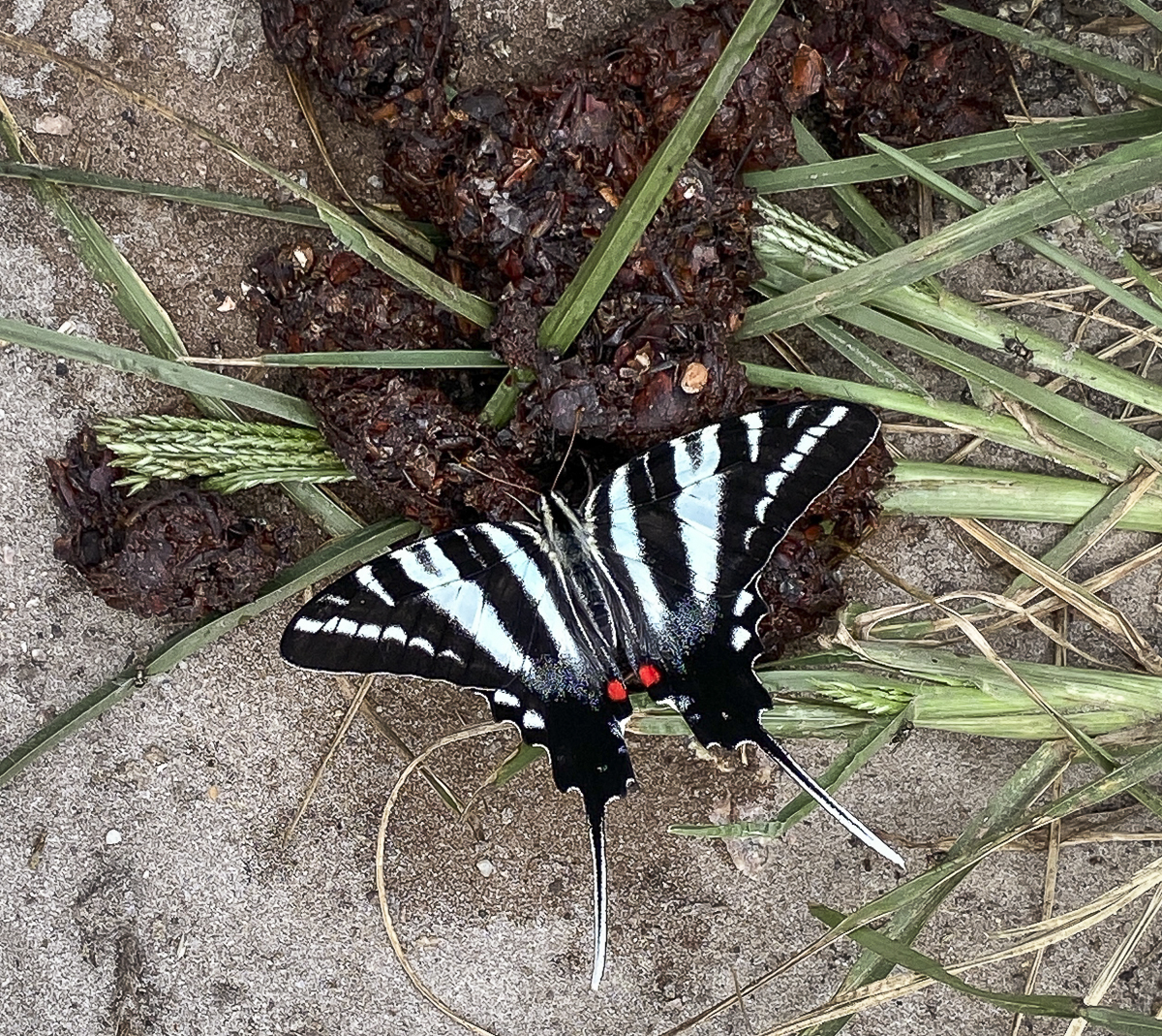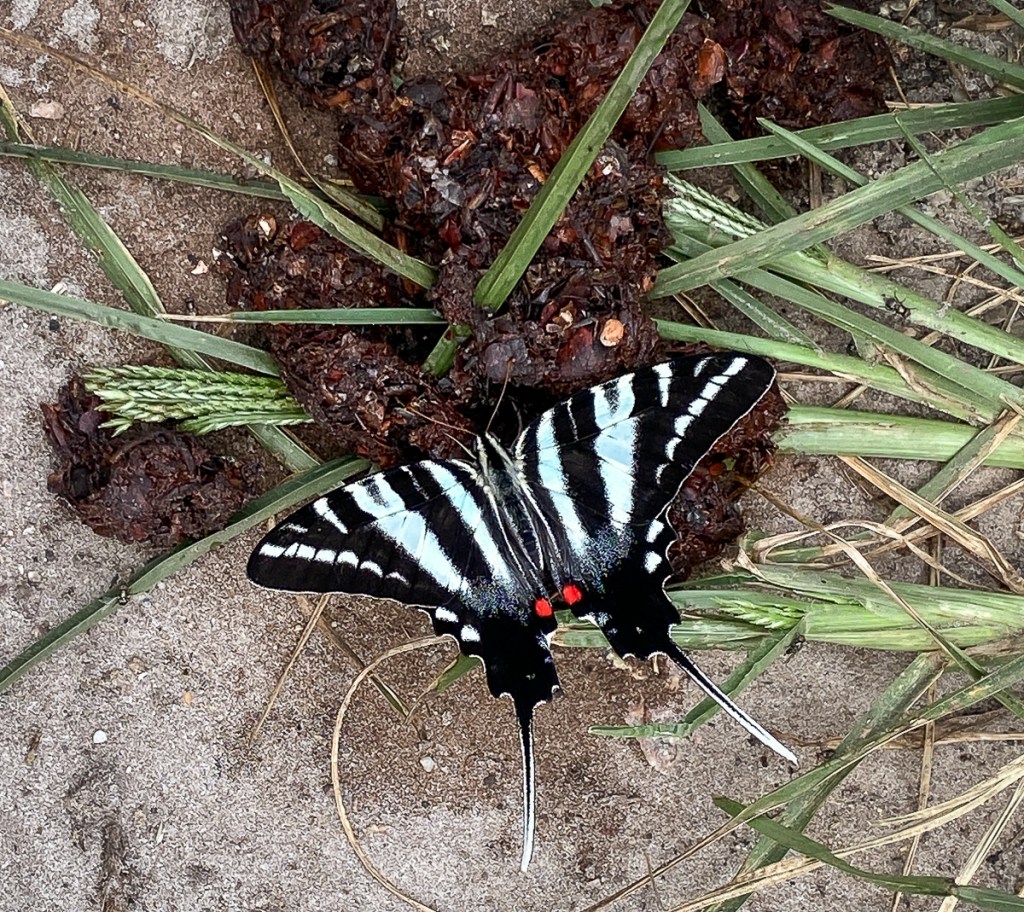 Along the now closed South Lake Road (I see they are working on it, so I hope it will be open by winter), I saw several butterflies stopping to sun in the open sandy spots, and a few were stopping at the local roadside diner to partake of the daily special – bear scat.