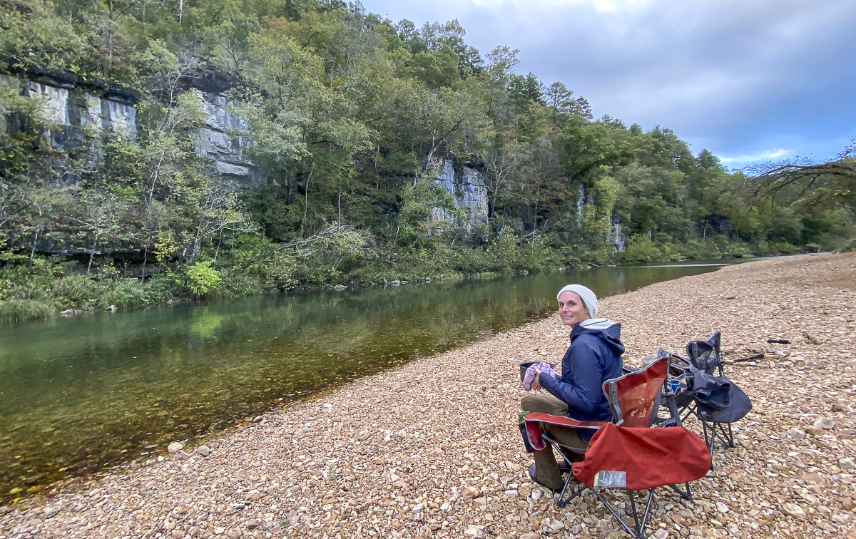I imagine this river can be very crowded during the warmer months, but we encountered few paddlers during our trip. That lack of paddlers also meant we had plenty of dried sticks available on the gravel bars to gather for firewood each evening. Our daily ritual became get up early, eat breakfast by a small campfire, paddle, stop for short hikes to a spring, lunch in a scenic spot, paddle until 3 or 4 p.m., and then find a nice gravel bar for the night. Gather firewood, cook a nice meal, and sit by the fire until 8 or 9 p.m. and then hit the tent. Most of the time we had no cell phone service so no news, no email, just each other, the stars and the sounds of the river.
