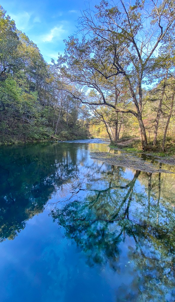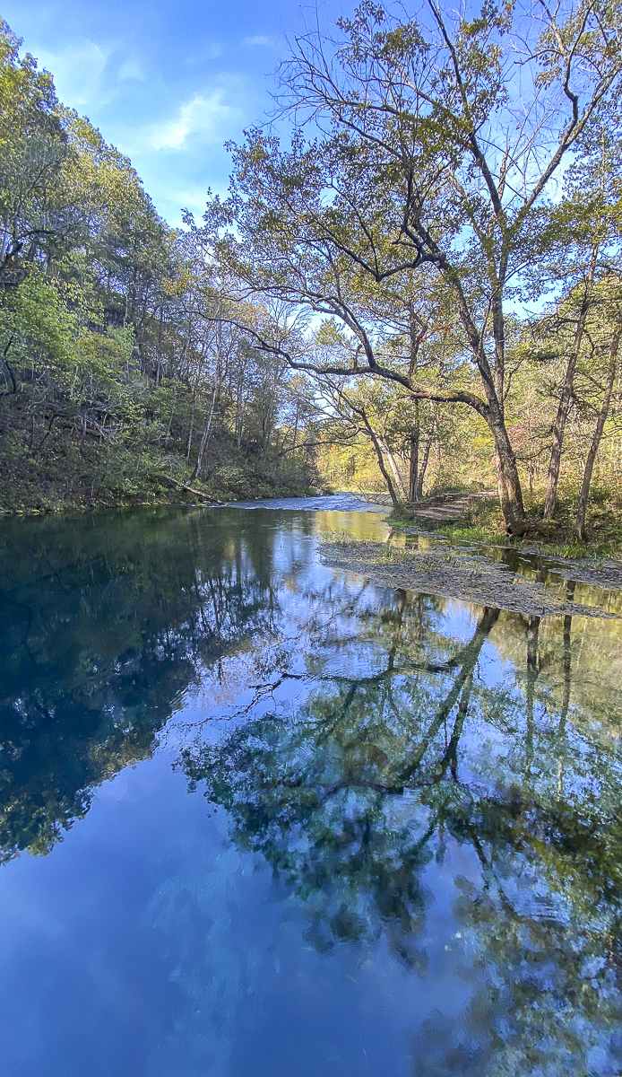 A long gravel bar at Owls Bend was a perfect spot to camp the next night. After a misty sunrise, we paddled to Blue Spring. A short hike revealed a true gem of a site, with water reminiscent of a tropical lagoon. This is the eighth largest spring in Missouri with an average daily flow of 87 million gallons.