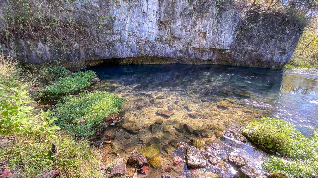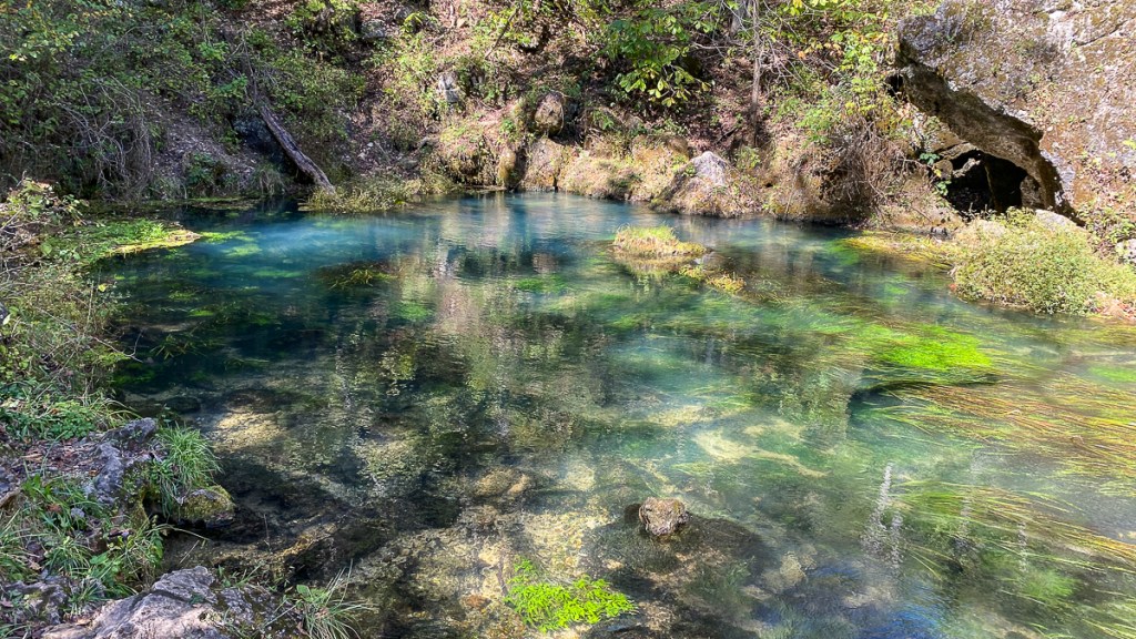 Downstream from Cave Spring is another large spring, Pulltite Spring, accessible by a short hike from the river’s edge. This is ranked as the thirteenth largest spring in Missouri, with a daily discharge of between 38 and 47 million gallons.