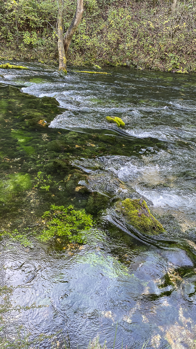 Our first major spring was Welch Spring, just a few miles from our launch site. An interpretive sign along the short trail from the river to the spring explained the site was initially owned by a man named Welch, who built a grist mill and store at the site. We were stunned to read that the average daily flow from the spring is 70 million gallons of water! As it joins the river, this discharge nearly doubles the flow of the river. And there are much larger springs along this river, including Big Spring (below where we took out at Log Yard). With a daily flow of about 286 million gallons, Big Spring is the largest spring in the Ozarks and one of the largest single spring outlets in the world.