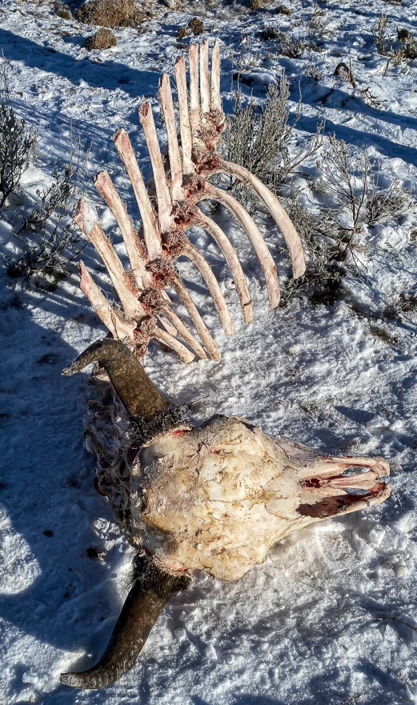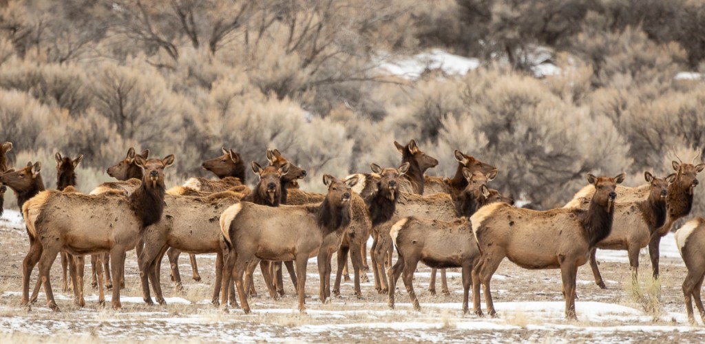 It seems there are not a lot of quotes out there about ungulates (hoofed mammals) but I found this one in a clever blog post by someone that I know through social media. I agree with him, that ungulates often get overlooked by a lot of people when there are charismatic mega-fauna like wolves and bears around, but they shouldn’t be, as they are fascinating and beautiful in their own right. Yellowstone has eight species of ungulates (hence the title), seven native to the region (Elk, Bison, Mule Deer, White-tailed Deer, Rocky Mountain Bighorn Sheep, Pronghorn, Moose) and one introduced to the area (Rocky Mountain Goats). On this trip, we managed to see the seven native species. It isn’t easy to spot a white goat high on a mountain slope in winter! Not many years ago, the toughest two of the ungulates to find in the park were Moose and White-tailed Deer (Mule Deer are the dominant of what are usually considered deer in the park). But, the past few years we have been seeing more of our familiar white-tails, and this year, was a relative banner year for Moose (more on them in a future post).