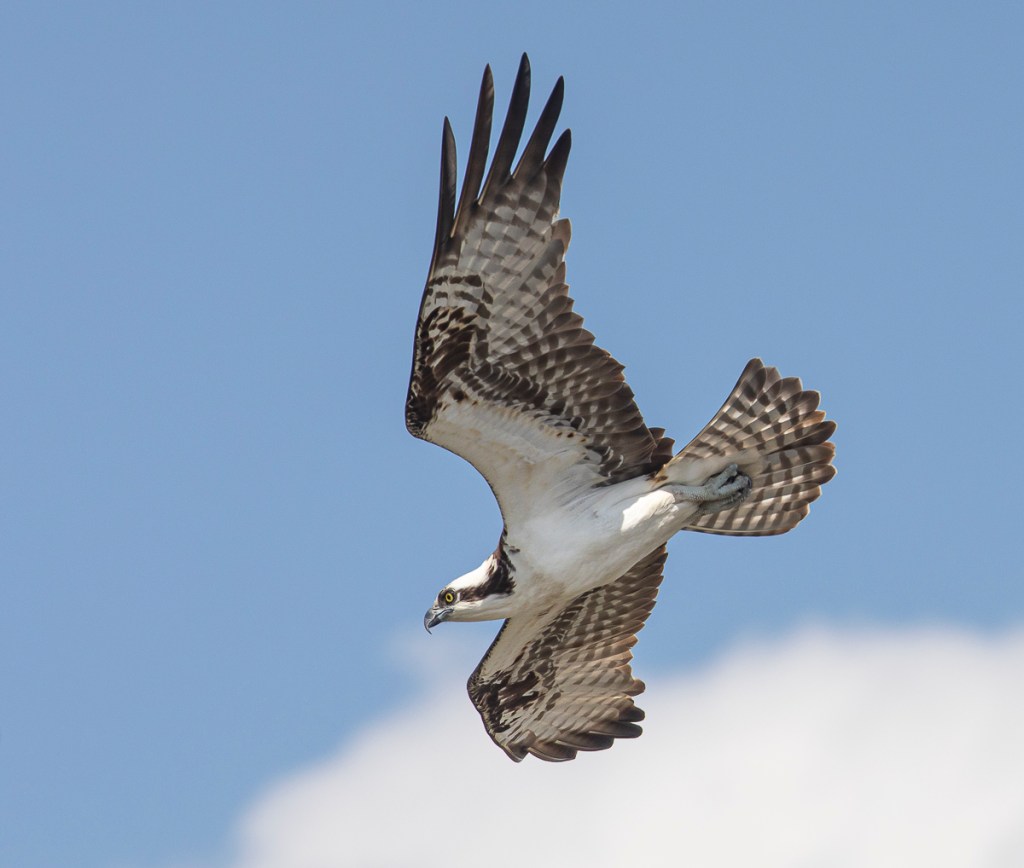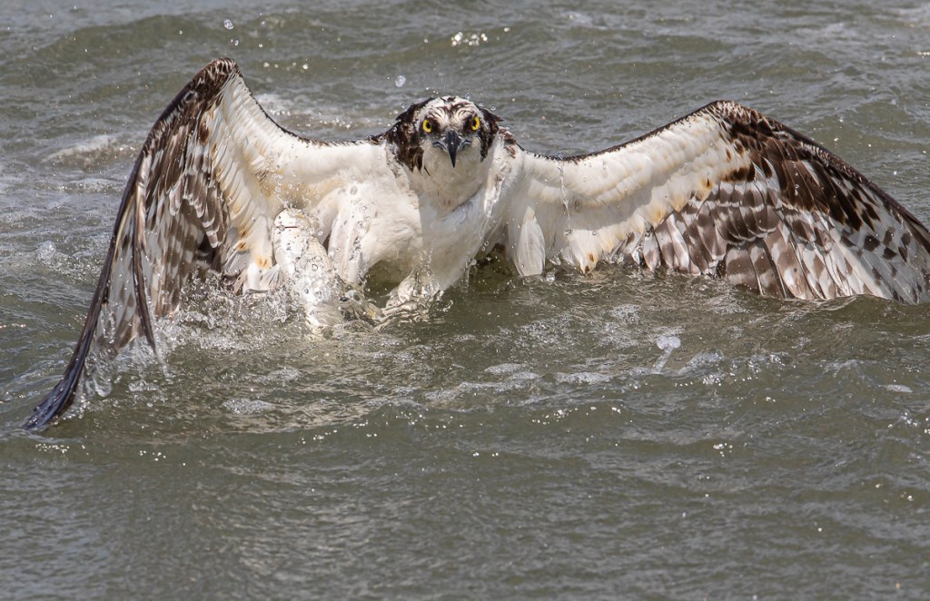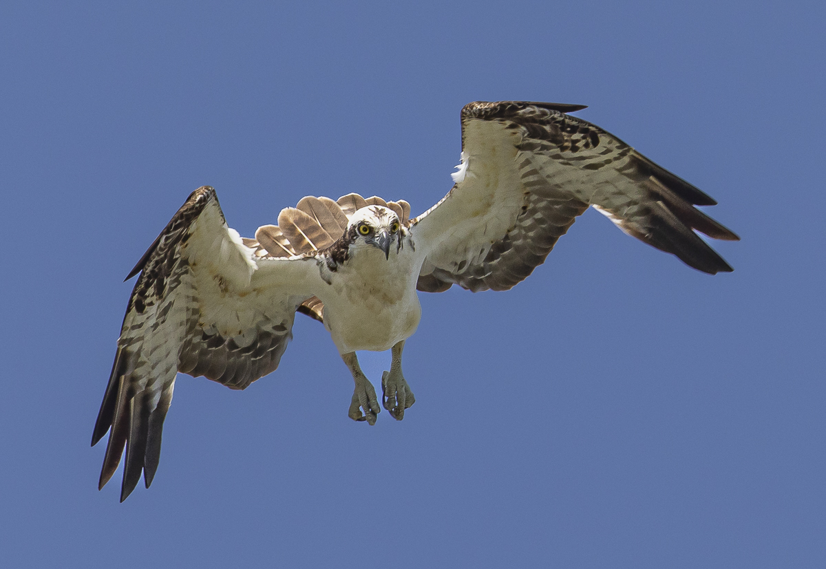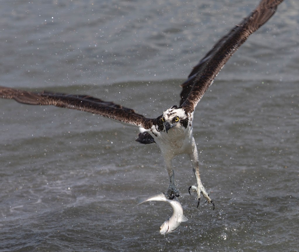 Studies show success rates for Osprey dives of between 24% and 82% (meaning they don’t catch a fish every time). They have specialized toe pads, strongly hooked talons, and a reversible outer toe, all of which give them a better grip on the fish.