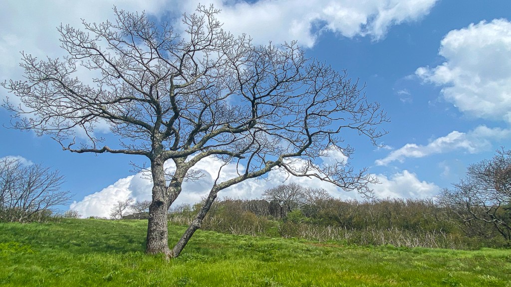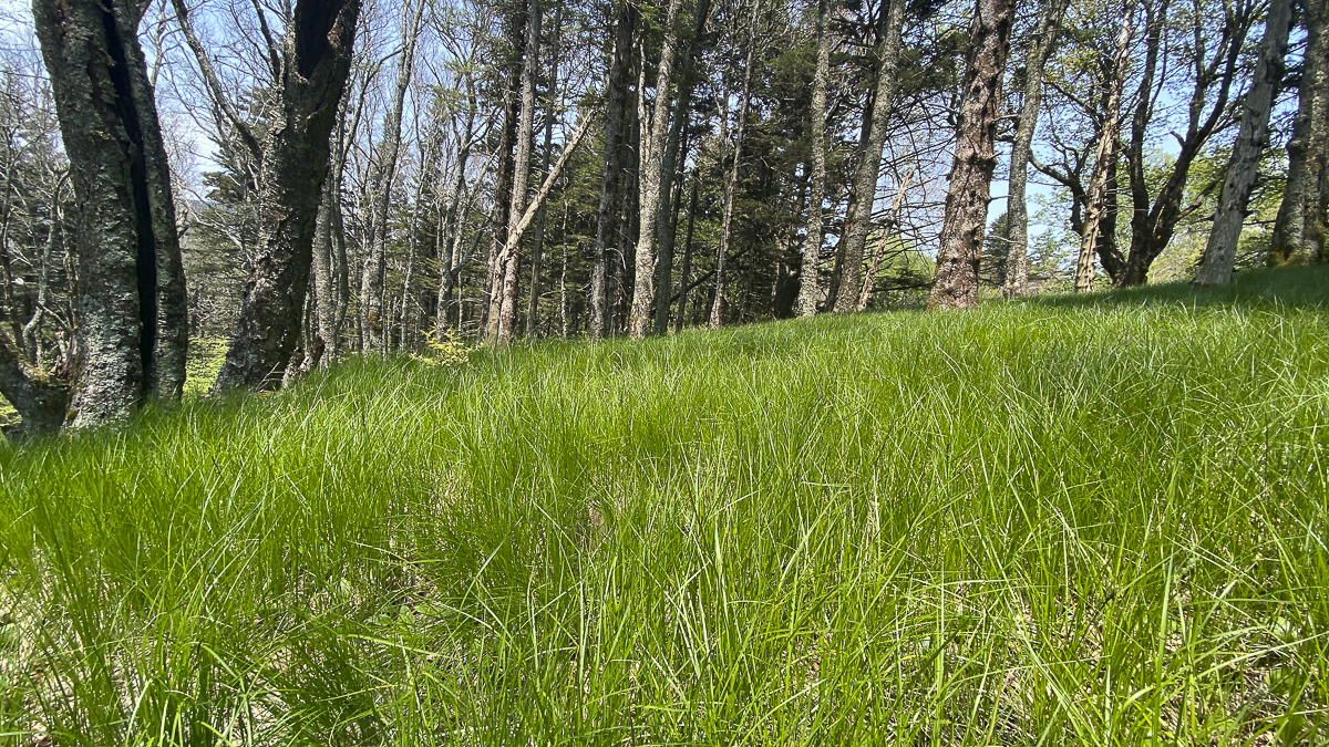 Since it was still early in the day, we bypassed the road up to Mt. Mitchell and headed to Craggy Gardens for a short hike. The grassy area at trail’s end is surrounded by rhododendron, although it was just a bit too early to see blooms. But, there were plenty of other things to observe…