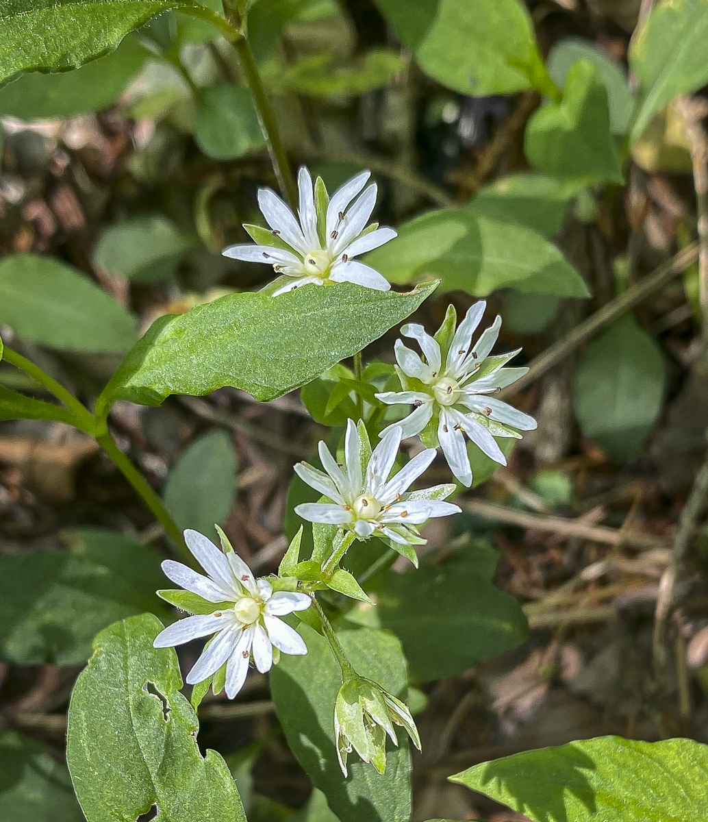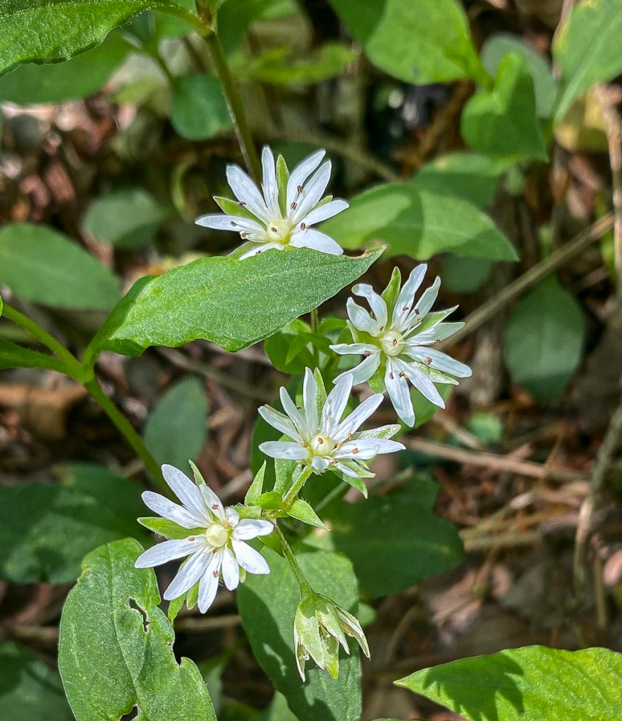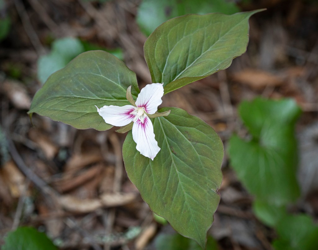 The trail had an abundance of wildflowers and bright green meadows of sedges under the gnarly trees. Painted Trilliums and Giant Chickweed were scattered all along the walk.