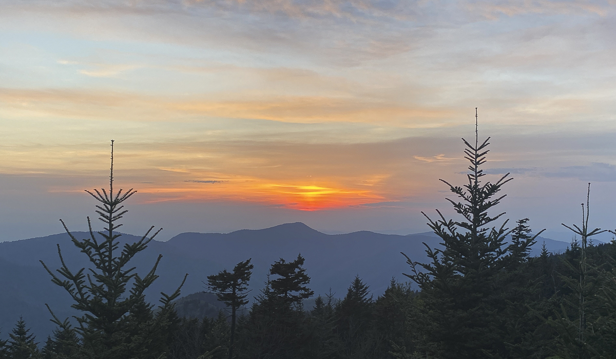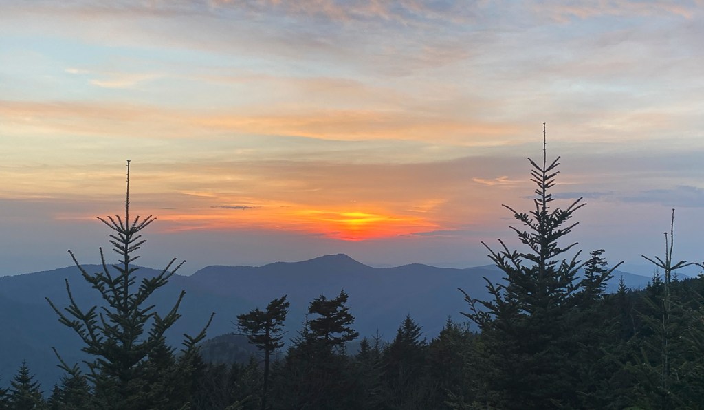 We finally headed up to Mount Mitchell and set up camp. We have camped at this site (site #1) before (there are only 9 sites, so it is easier to remember which ones you like). It is convenient to the parking lot and used to have a great view of the mountains and sunset. We were amazed at how tall the Fraser Firs had grown in the few years since our last visit. As we were finishing cooking our dinner, the Park Superintendent came up to warn campers of a severe thunderstorm warning for the area with potential for strong winds and hail. There was one dark cloud out to the west, so we started securing our site and, as a light rain started to fall, we headed down to the truck to eat our meals while the storm passed. As we sat in the cab, we noticed some small hail pellets begin to fall. Their size and intensity grew quickly and soon we were wondering if our windshield was going to survive this onslaught. Here is a quick sample of what it was like.