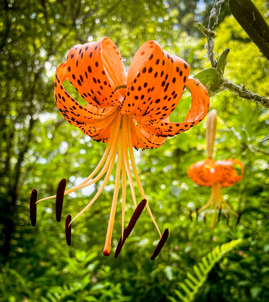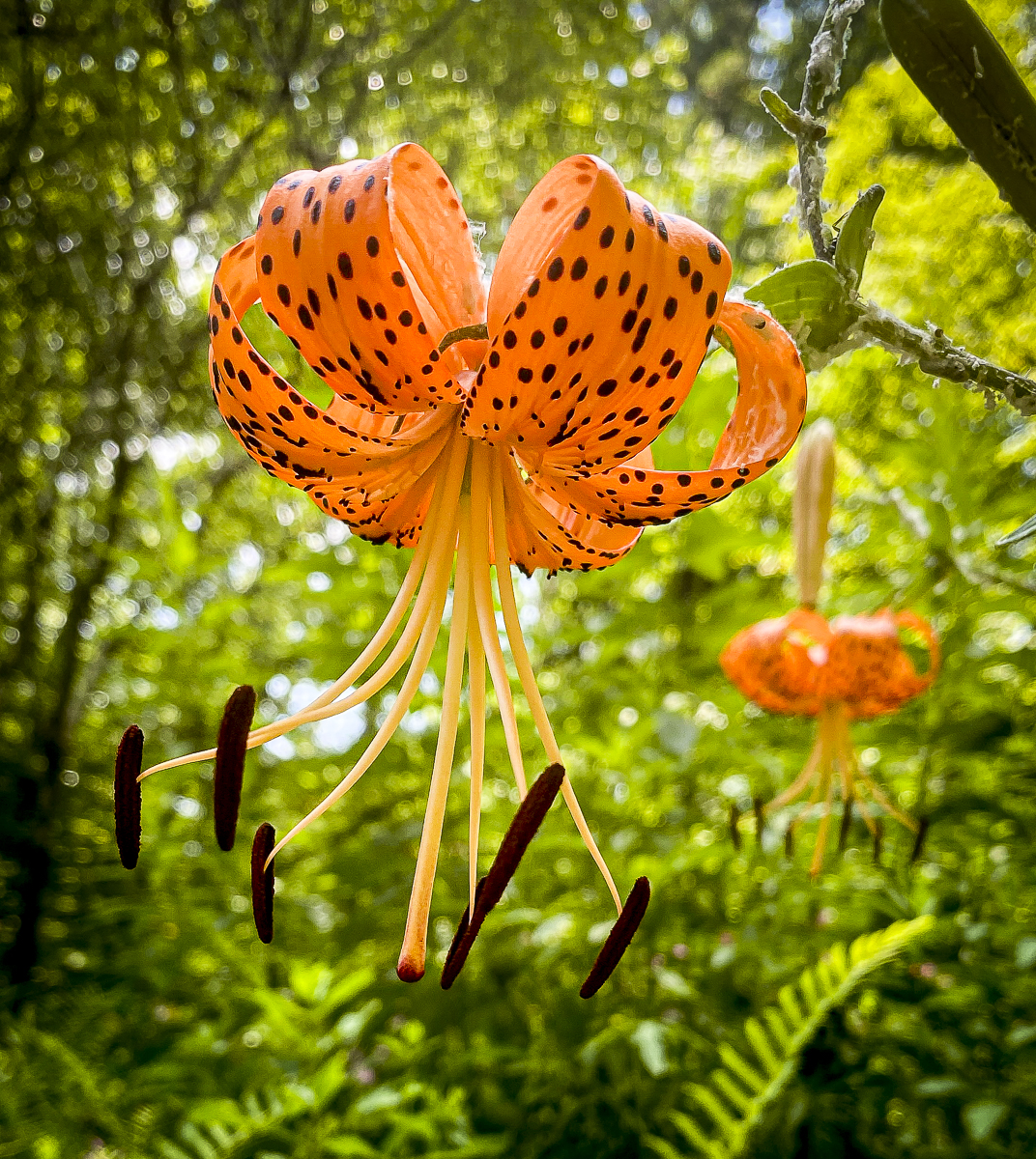 Tiger Lily. These majestic flowers are not native, but have taken up a section of our yard, much to the liking of swallowtail butterflies and the hummingbirds.