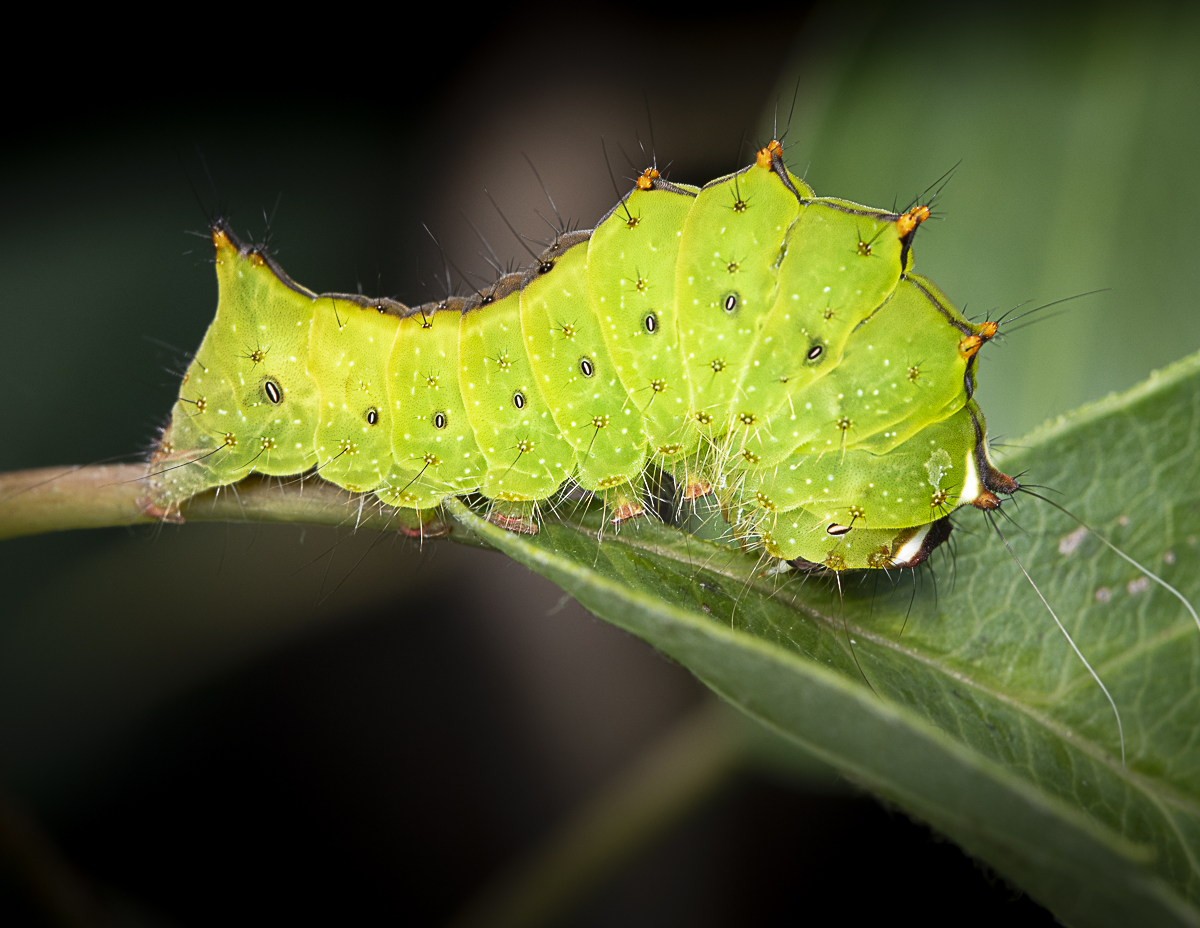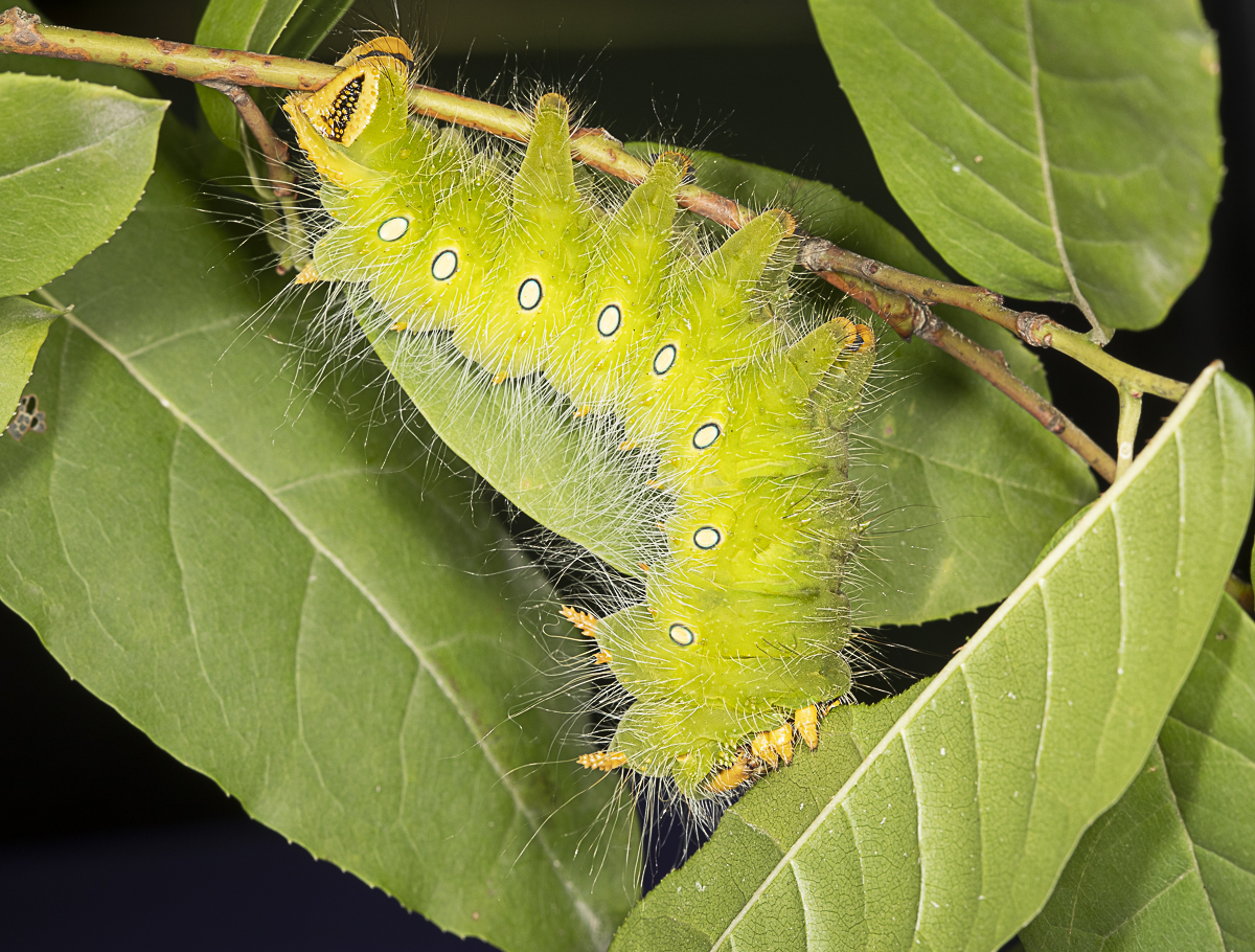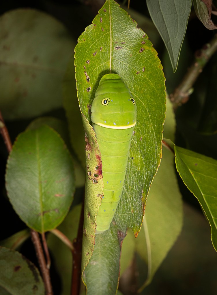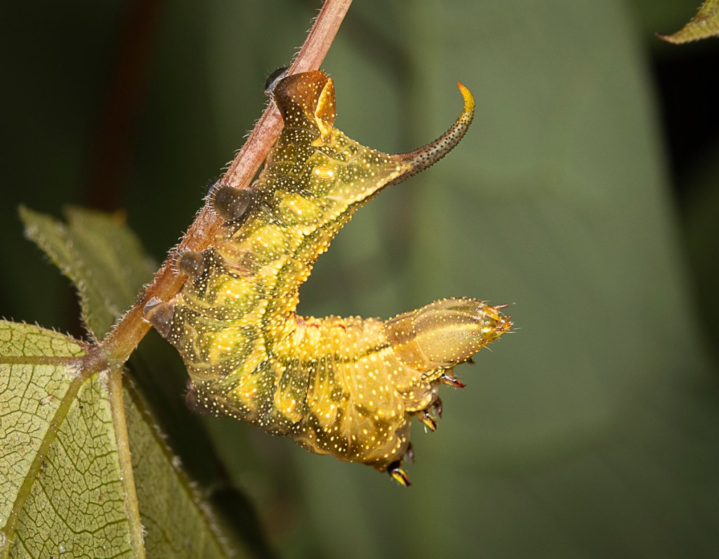 Spicebush Swallowtail (Papilio troilus) caterpillar. The large fake eye spots, its habit of creating folded leaf shelters to hide in, and the woodcock-like creeping motion (it often bobs its head as it crawls) make this common species a crowd favorite. Look for these on Spicebush and Sassafras. (click photos to enlarge)A close relative to the larva above is this Eastern Tiger Swallowtail (Papilio glaucus). Favorite host plants include Tulip Poplar and Wild Cherry. An early instar White Furcula (Furcula borealis). The long “tails” are actually the anal prolegs. When disturbed, the caterpillar shunts fluid into them, they greatly elongate, and are then whipped about as a defense.Waved Sphinx (Ceratomia undulosa) on ash. Most sphinx moth larvae are adorned with a horn (hence the name hornworm) on their posterior. The exact function of the horn is not known, although it may serve as a visual predator deterrent. I have had many people tell me they think they can sting (but they can’t).A Snowberry Clearwing (Hemaris diffinis) larva on Japanese Honeysuckle. This caterpillar turns into a day-flying bumblebee-mimic moth.A Hummingbird Clearwing (Hemaris thysbe). I once had someone ask about the really tiny hummingbirds at their flowers…it turned out to be the adults of this caterpillar, another day-flying moth.This Hog Sphinx (Darapsa myron) was captured by accident as I brought in some wild grape vine to feed another larval species. I snipped some vine from the yard, brought it in and Melissa spotted this little guy. Guess I need to look before I snip. This species varies in color from brown to green to yellow.Pink-striped Oakworm (Anisota virginiensis) on Red Oak. These often occur in large clusters as female moths may lay several hundred eggs on one branch.Lace-capped Moth larva (Oligocentria lignicolor). Like many of the prominent caterpillars, these larvae eat away a portion of the leaf and then rest their body along the chewed edge to camouflage themselves.Another leaf edge larva, a Unicorn Caterpillar (Schizura unicornis) (see, unicorns ARE real).A Clear Dagger Moth (Acronicta clarescens) caterpillar withdrawing its head capsule as a defensive posture.Grapeleaf Skeletonizer (Harrisina americana). Touching this tiny larva may result in a skin rash on sensitive individuals.Luna Moth larva (Actias luna) on hickory. In our area, Sweet Gum is usually the primary host plant, but we also found them on this tree and a Persimmon.The largest Polyphemus Moth (Antheraea polyphemus) caterpillar we have ever seen! They are often confused with Luna Moth larvae, but lack the prominent red dots and the lateral line of the latter. Oaks and River Birch are the primary hosts.Another of the big caterpillars this year was this beautiful green Imperial Moth (Eacles imperialis) larva. They come in a variety of colors from this leafy green to brown, red, and salmon. All are easily recognized by their long setae (hairs) and prominent white spiracles (breathing ports along the side).The true star of the show, a Hickory Horned Devil (Citheronia regalis), was given to us by a friend in Southern Pines. North America’s largest caterpillar is always a delight to find, but, due to the usual timing of BugFest, is a tough one for us to get as they usually pupate by early September. This one stopped feeding and started turning blue-green in color the night before the event, indicating it was preparing to pupate. At the end of the day, we placed it in a tub of soil and it quickly buried itself to form a pupal chamber and shed its caterpillar skin one last time to turn into a pupa. It will spend the winter underground before emerging as a Royal Walnut Moth next summer.These early instar Cecropia Moth (Hyalophora cecropia) caterpillars were raised in the museum’s Arthropod Zoo. They will grow to be almost as large as the Hickory Horned Devil before forming their cocoons.This beautiful larva is a Saddleback Caterpillar (Acharia stimulea), one of the so-called “stinging” caterpillars. They possess spines that can inject small amounts of venom into anything they touch. The resulting sting feels much like a wasp sting.This beauty is a Stinging Rose Caterpillar (Parasa indetermina) from the Sandhills. They also occur in orange or red and can be found on a variety of woody plants.One of my favorite slug caterpillars, the Crowned Slug (Isa textula). David L. Wagner, in his wonderful field guide, Caterpillars of Eastern North America, sums up the bizarre slug caterpillars as being “more fantasy than reality”. As a group, the slug caterpillars often become the favorites of anyone that gets interested in caterpillars, and I admit to thinking they are the coolest of the Lepidopteran larvae.This Yellow-shouldered Slug caterpillar has a tachinid fly egg on it (the white oval near the bottom of the larva). The fly larva hatches shortly after the egg is laid and burrows into the caterpillar, eating it from the inside and eventually killing the host.The unusual shape is a diagnostic feature of the odd Skiff Moth (Prolimacodes badia) larva. Unlike most of the slug caterpillars, these do not have stinging spines, but can emit a foul-smelling liquid when disturbed. The white spots may be an adaptation to deceive tachinid flies from laying their eggs since female flies may not lay an egg on a caterpillar that is already infected with the parasitoid. Black-waved Flannel Moth (Megalopyge crispata) larva on Persimmon. The dense hairs hide spiny warts which can inflict a painful sting. This species feeds on a variety of hardwood leaves.Another Black-waved Flannel Moth showing the color variation in this species.The Puss Caterpillar (aka Southern Flannel Moth, Megalopyge opercularis) is a species you definitely do not want to touch. The stinging spines beneath the dense hairs pack a powerful punch that can send worried victims to the ER due to the long-lasting pain. Most people never encounter this unusual caterpillar as it usually s