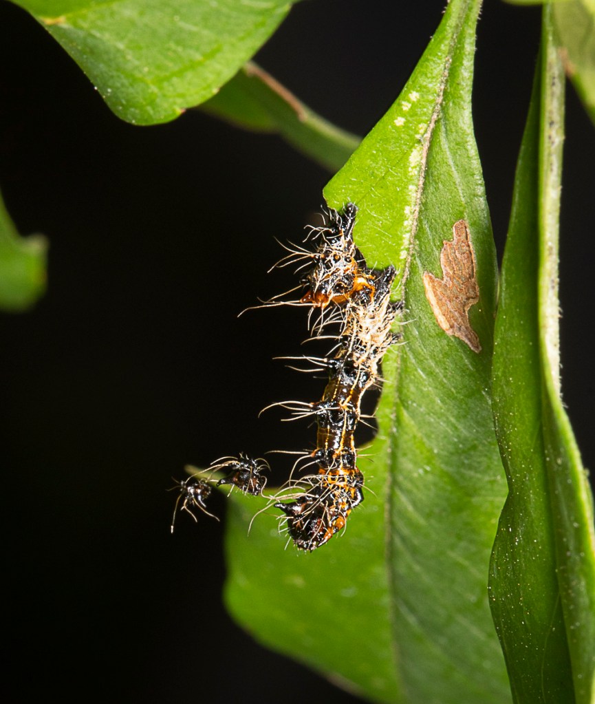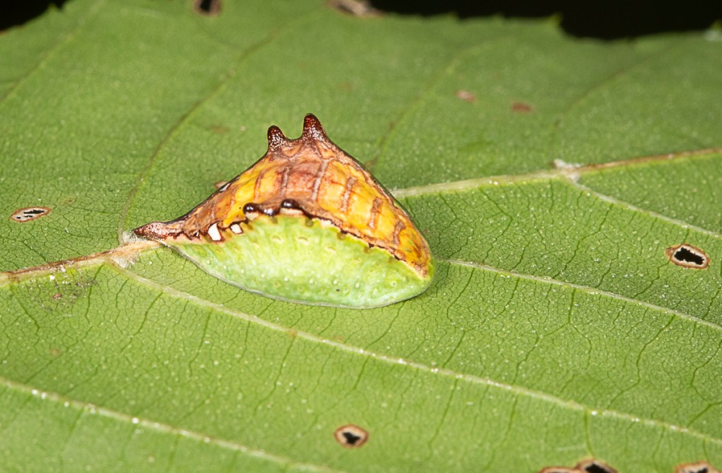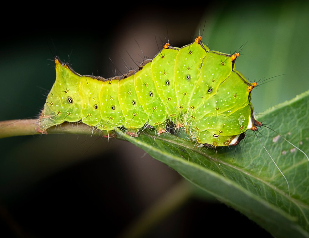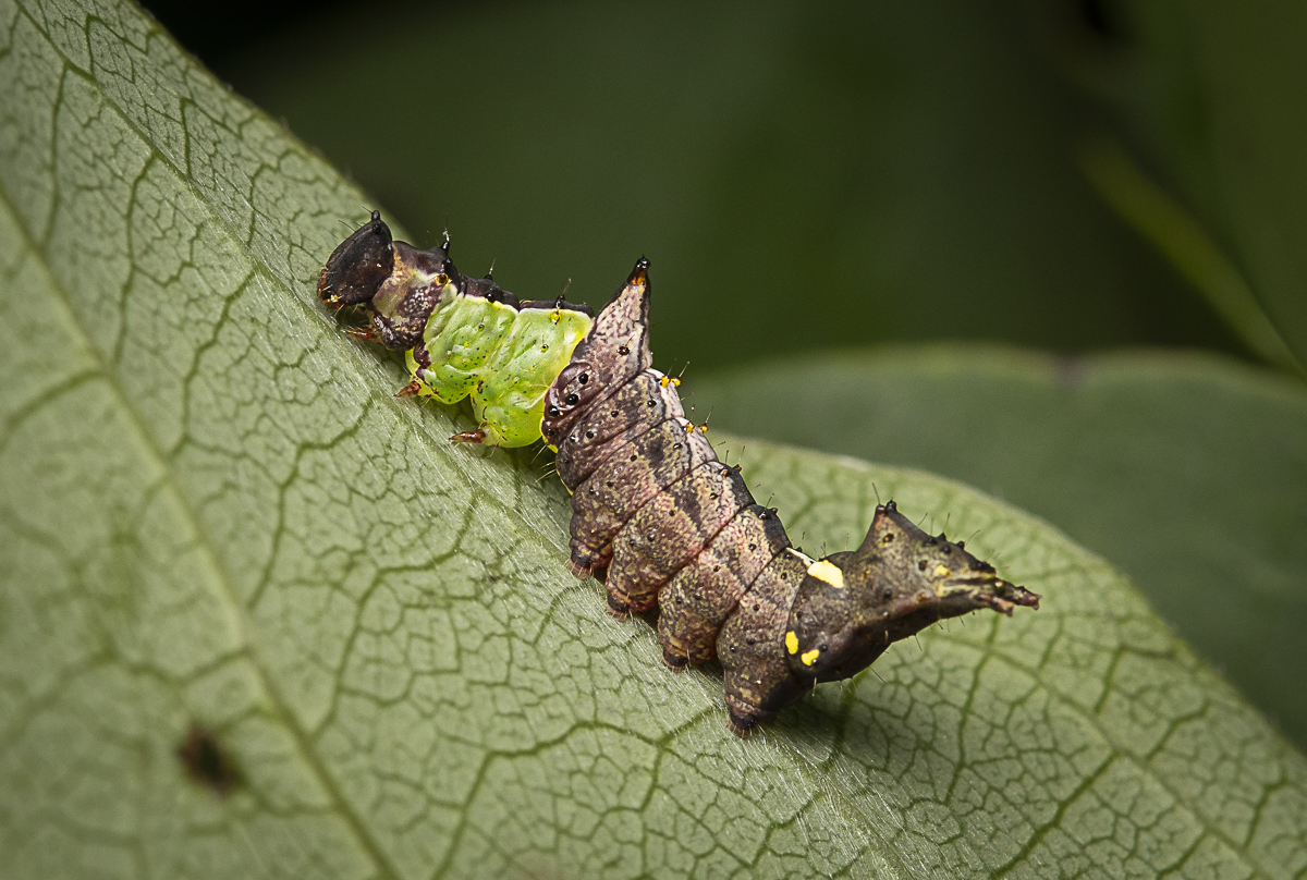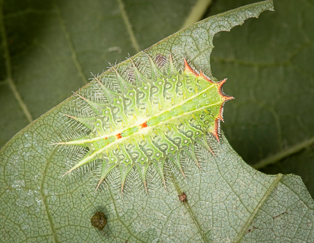Spicebush Swallowtail (Papilio troilus) caterpillar. The large fake eye spots, its habit of creating folded leaf shelters to hide in, and the woodcock-like creeping motion (it often bobs its head as it crawls) make this common species a crowd favorite. Look for these on Spicebush and Sassafras. (click photos to enlarge)A close relative to the larva above is this Eastern Tiger Swallowtail (Papilio glaucus). Favorite host plants include Tulip Poplar and Wild Cherry. An early instar White Furcula (Furcula borealis). The long “tails” are actually the anal prolegs. When disturbed, the caterpillar shunts fluid into them, they greatly elongate, and are then whipped about as a defense.Waved Sphinx (Ceratomia undulosa) on ash. Most sphinx moth larvae are adorned with a horn (hence the name hornworm) on their posterior. The exact function of the horn is not known, although it may serve as a visual predator deterrent. I have had many people tell me they think they can sting (but they can’t).A Snowberry Clearwing (Hemaris diffinis) larva on Japanese Honeysuckle. This caterpillar turns into a day-flying bumblebee-mimic moth.A Hummingbird Clearwing (Hemaris thysbe). I once had someone ask about the really tiny hummingbirds at their flowers…it turned out to be the adults of this caterpillar, another day-flying moth.This Hog Sphinx (Darapsa myron) was captured by accident as I brought in some wild grape vine to feed another larval species. I snipped some vine from the yard, brought it in and Melissa spotted this little guy. Guess I need to look before I snip. This species varies in color from brown to green to yellow.Pink-striped Oakworm (Anisota virginiensis) on Red Oak. These often occur in large clusters as female moths may lay several hundred eggs on one branch.Lace-capped Moth larva (Oligocentria lignicolor). Like many of the prominent caterpillars, these larvae eat away a portion of the leaf and then rest their body along the chewed edge to camouflage themselves.Another leaf edge larva, a Unicorn Caterpillar (Schizura unicornis) (see, unicorns ARE real).A Clear Dagger Moth (Acronicta clarescens) caterpillar withdrawing its head capsule as a defensive posture.Grapeleaf Skeletonizer (Harrisina americana). Touching this tiny larva may result in a skin rash on sensitive individuals.Luna Moth larva (Actias luna) on hickory. In our area, Sweet Gum is usually the primary host plant, but we also found them on this tree and a Persimmon.The largest Polyphemus Moth (Antheraea polyphemus) caterpillar we have ever seen! They are often confused with Luna Moth larvae, but lack the prominent red dots and the lateral line of the latter. Oaks and River Birch are the primary hosts.Another of the big caterpillars this year was this beautiful green Imperial Moth (Eacles imperialis) larva. They come in a variety of colors from this leafy green to brown, red, and salmon. All are easily recognized by their long setae (hairs) and prominent white spiracles (breathing ports along the side).The true star of the show, a Hickory Horned Devil (Citheronia regalis), was given to us by a friend in Southern Pines. North America’s largest caterpillar is always a delight to find, but, due to the usual timing of BugFest, is a tough one for us to get as they usually pupate by early September. This one stopped feeding and started turning blue-green in color the night before the event, indicating it was preparing to pupate. At the end of the day, we placed it in a tub of soil and it quickly buried itself to form a pupal chamber and shed its caterpillar skin one last time to turn into a pupa. It will spend the winter underground before emerging as a Royal Walnut Moth next summer.These early instar Cecropia Moth (Hyalophora cecropia) caterpillars were raised in the museum’s Arthropod Zoo. They will grow to be almost as large as the Hickory Horned Devil before forming their cocoons.This beautiful larva is a Saddleback Caterpillar (Acharia stimulea), one of the so-called “stinging” caterpillars. They possess spines that can inject small amounts of venom into anything they touch. The resulting sting feels much like a wasp sting.This beauty is a Stinging Rose Caterpillar (Parasa indetermina) from the Sandhills. They also occur in orange or red and can be found on a variety of woody plants.One of my favorite slug caterpillars, the Crowned Slug (Isa textula). David L. Wagner, in his wonderful field guide, Caterpillars of Eastern North America, sums up the bizarre slug caterpillars as being “more fantasy than reality”. As a group, the slug caterpillars often become the favorites of anyone that gets interested in caterpillars, and I admit to thinking they are the coolest of the Lepidopteran larvae.This Yellow-shouldered Slug caterpillar has a tachinid fly egg on it (the white oval near the bottom of the larva). The fly larva hatches shortly after the egg is laid and burrows into the caterpillar, eating it from the inside and eventually killing the host.The unusual shape is a diagnostic feature of the odd Skiff Moth (Prolimacodes badia) larva. Unlike most of the slug caterpillars, these do not have stinging spines, but can emit a foul-smelling liquid when disturbed. The white spots may be an adaptation to deceive tachinid flies from laying their eggs since female flies may not lay an egg on a caterpillar that is already infected with the parasitoid. Black-waved Flannel Moth (Megalopyge crispata) larva on Persimmon. The dense hairs hide spiny warts which can inflict a painful sting. This species feeds on a variety of hardwood leaves.Another Black-waved Flannel Moth showing the color variation in this species.The Puss Caterpillar (aka Southern Flannel Moth, Megalopyge opercularis) is a species you definitely do not want to touch. The stinging spines beneath the dense hairs pack a powerful punch that can send worried victims to the ER due to the long-lasting pain. Most people never encounter this unusual caterpillar as it usually s