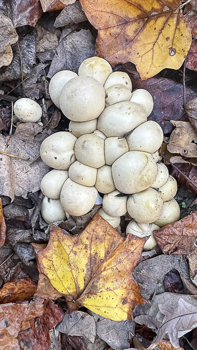 A cluster of Wolf-fart Puffballs in our yard in early November (click photos to enlarge)