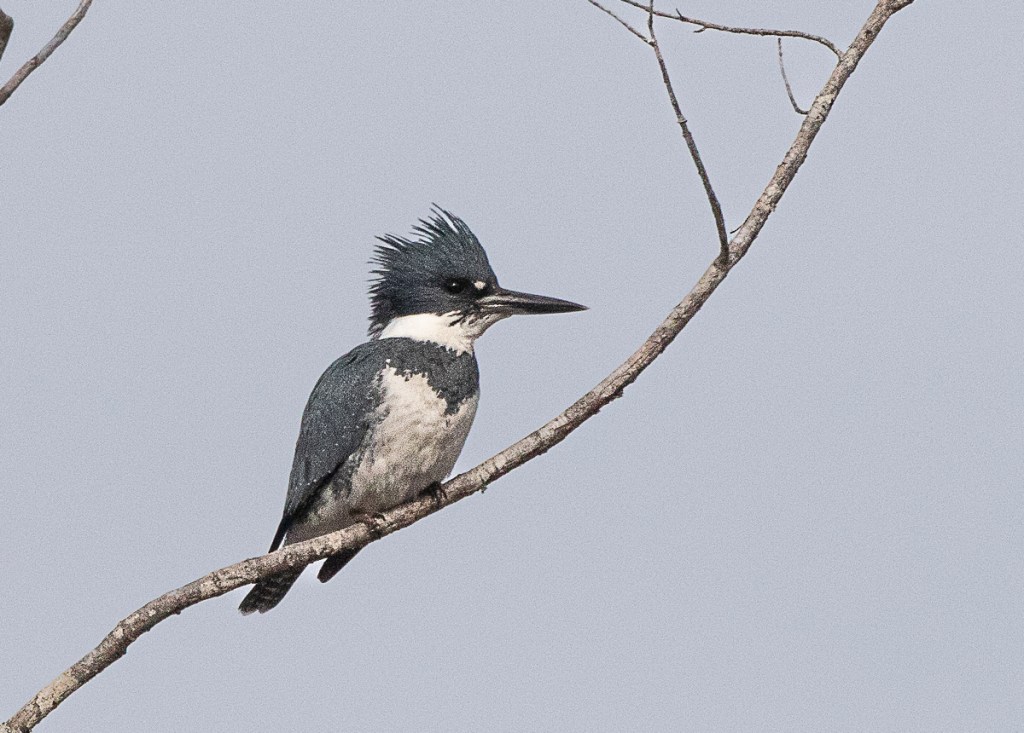At one stop we played cat and mouse with an elusive Belted Kingfisher. These birds are notoriously difficult to photograph as they tend to fly well before you are in decent camera range. This male (lacking the rust-colored breast band of females of the species) kept flying back and forth from in front of the car to behind as we traveled one section of road, finally allowing each of us to get a few images.