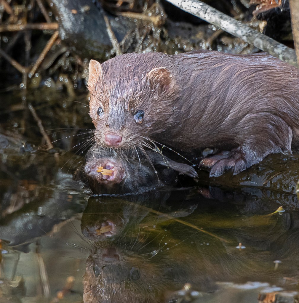 Daniel gets a superb photo of the Mink and its prey. We are guessing it is a Hispid Cotton Rat but welcome any other thoughts (photo by Daniel Tregeagle)