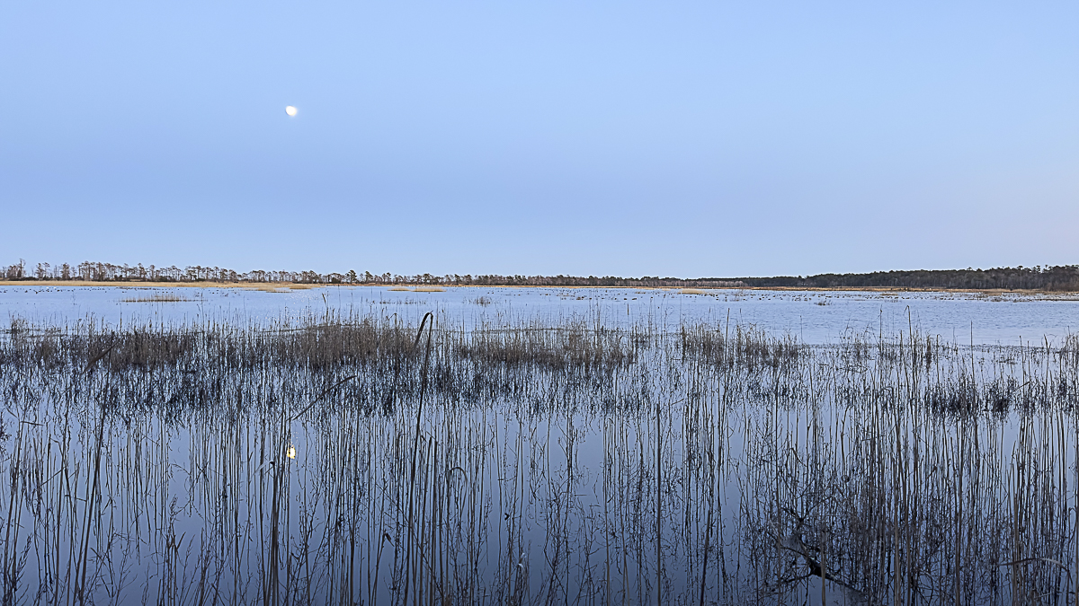 We spent the first afternoon at Mattamuskeet, scoping the impoundment on Wildlife Drive where hundreds of ducks, geese and swans were resting and feeding. Lunch by the lodge gave us time to appreciate the elegance of a Great Egret perched in a tree across the canal.