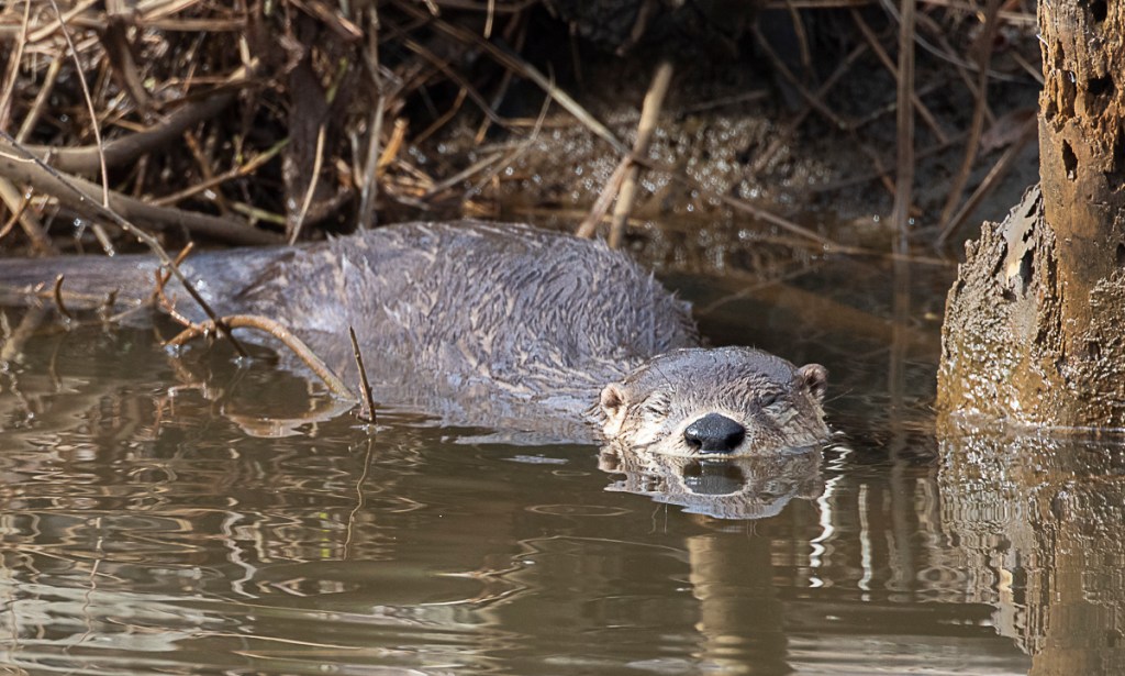 We ended the day with eight River Otter, a very good day of sightings for this fun-loving species. Our last otter was a sleepy one. It slid off the bank where it had been napping and then lazily lounged in the water, eyes half-closed. We watched it for several minutes as it slowly moved along the bank and then let it be.
