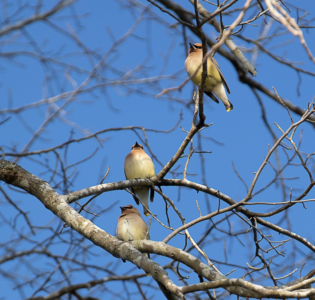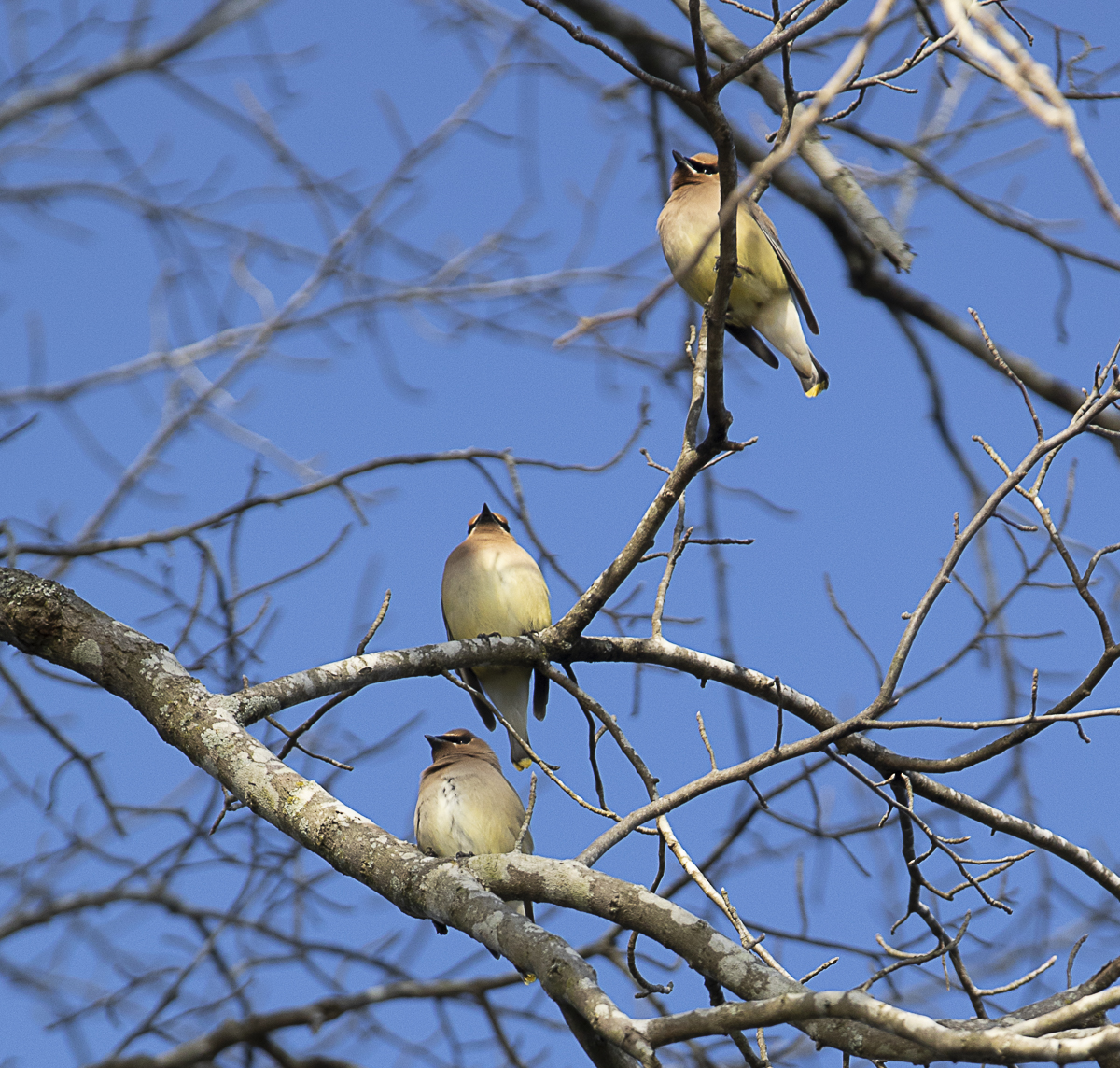 -A nice flock of Cedar Waxwings greeted us along the shoreline