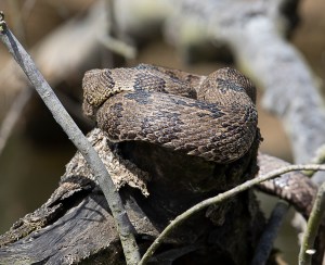 Brown Water Snake on log in water