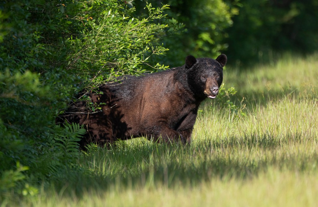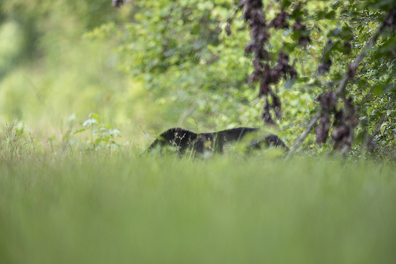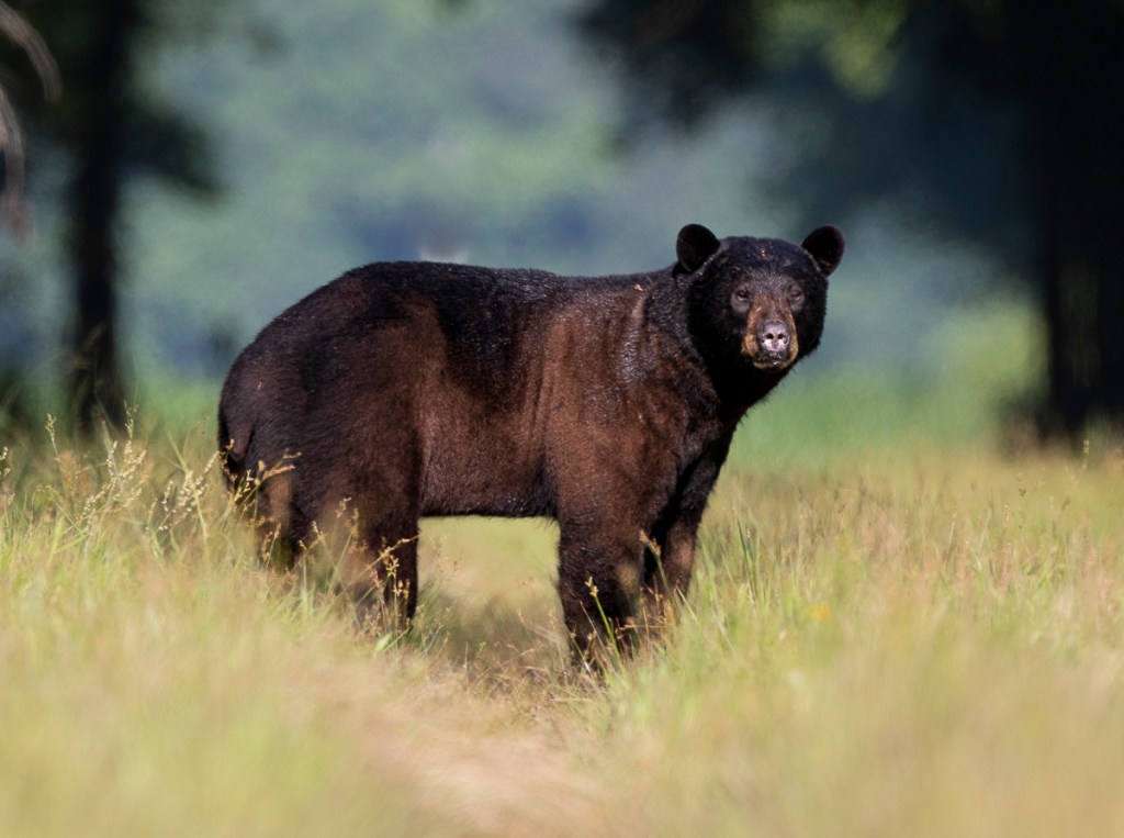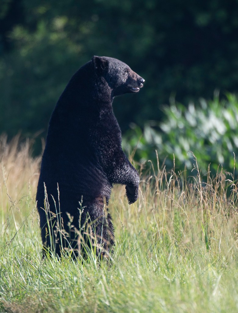 After being passed a couple of times by the folks on the E-bikes, I decided to head elsewhere for some alone time. I went back to the grassy road I had walked earlier. I quickly spotted a Wild Turkey and then saw some sort of canid far down the road heading the other way. I think it was a Red Wolf, but I can’t be sure (could have been a Coyote) due to the distance and the tall grasses. Soon, another bear comes out of the woods.