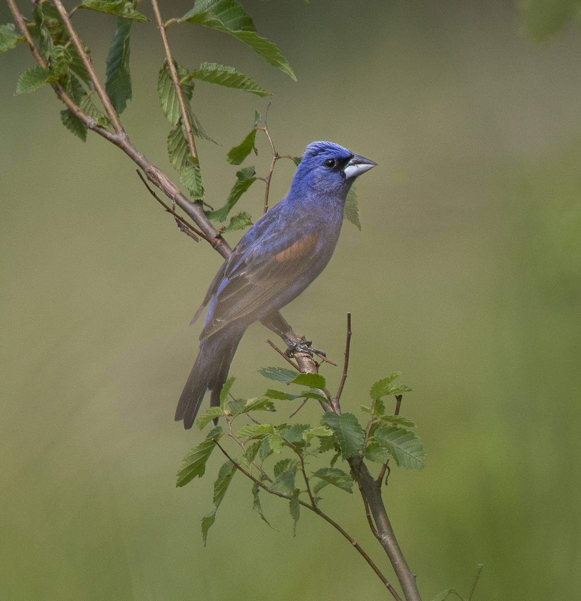 Walking down the road, I spotted a male Blue Grosbeak through the vegetation.