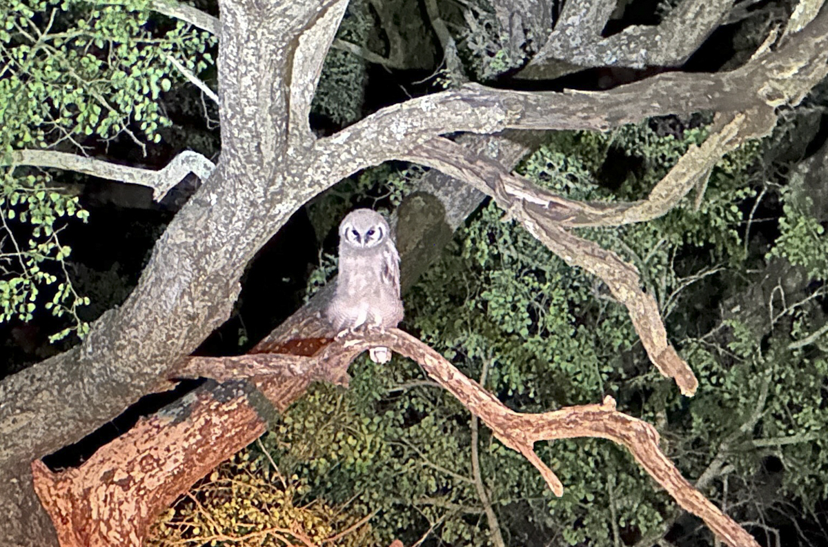 The night game drive was fascinating although I do believe we saw almost as much night life on the afternoon game drives as they usually ended after dark (except there were definitely more hippos out later as they leave the water to feed after sundown). The highlight for me on this drive was seeing a large owl, a Verreaux’s Eagle Owl, which can take prey as large as monkeys.