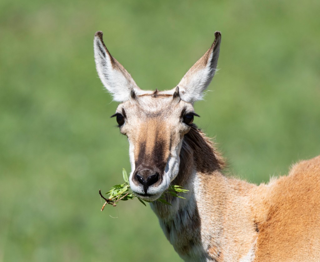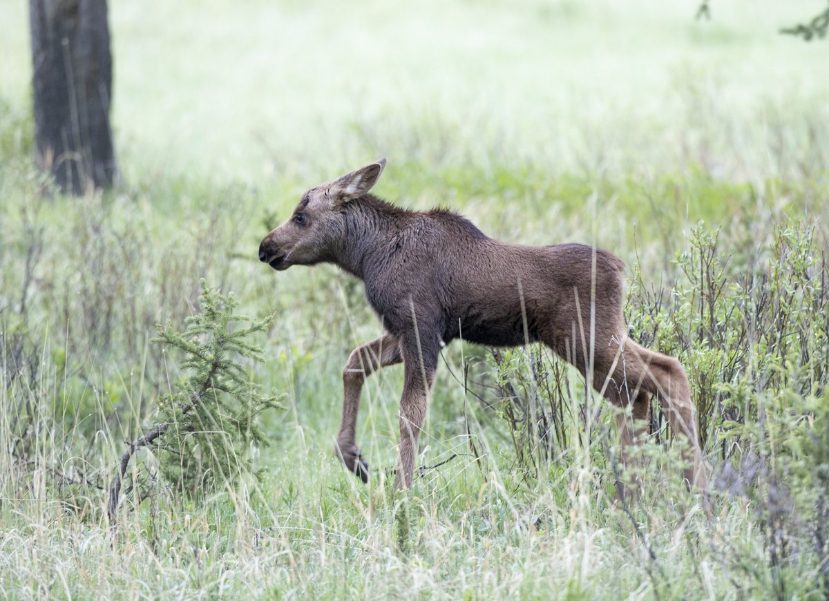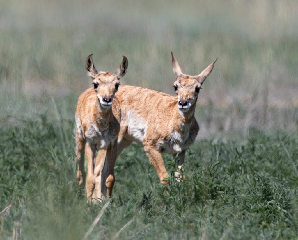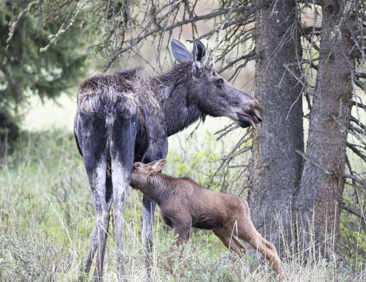 One of the best things about this time of year in Yellowstone is the abundance of baby animals. It is a tough place to be a baby with so many predators out and about searching for food, and different species have different strategies for protecting their young. The mama Moose keeps a keen eye out for any danger, and will not hesitate to attack a threat (a point I kept trying to make to people out of their cars and approaching her). On a drive down the road to the Slough Creek campground, Melissa spotted a Pronghorn doe with a youngster on a ridge away from the road. As we slowed, the baby dropped down behind a shrub. From our angle, we could no longer see it. This is typical behavior of these swiftest of mammals. Young will hide among vegetation while the mother wanders off to feed, returning every few hours to nurse them. The babies behavior and color allow them to blend into the landscape very well. Years ago, I almost stepped on one before seeing it. It remained motionless, flattened to the ground as I walked away. And, in a true act of love and protection, mother Pronghorns lick the droppings from their fawns’ rear end as a way to reduce scent that might attract predators.
