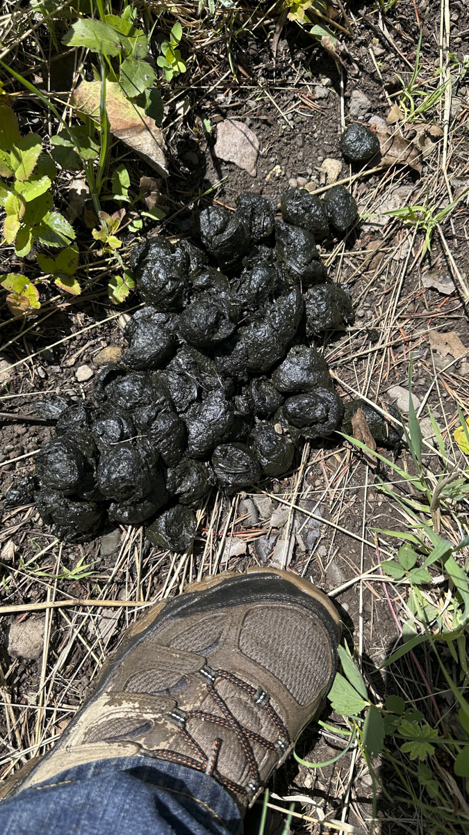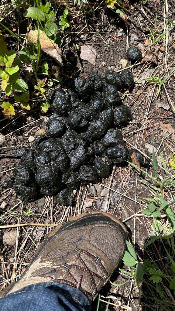 There have been a lot of Grizzly sightings reported this year so anytime we hiked, we carried bear spray and were paying attention to our surroundings. On one trail, we came across some fairly fresh Grizzly scat…that really makes you alert!