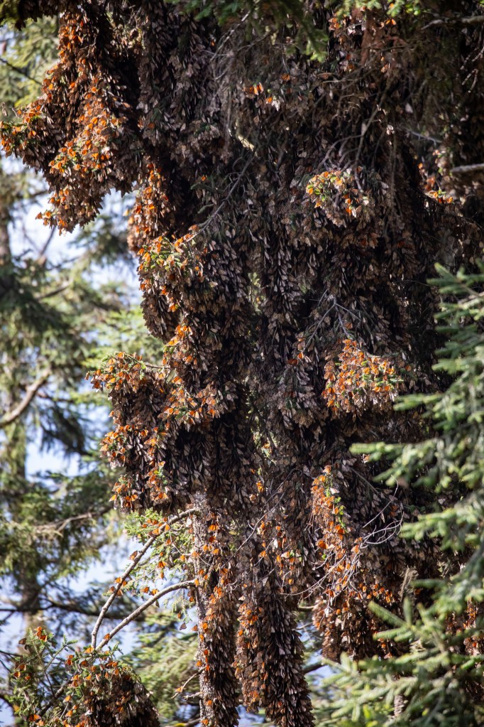 The last half-mile or so was a walk along a trail, with multiple stops to look at wildflowers (definitley not just to catch our breath). And then we walked into a grove filled with monarch butterflies roosting with wings folded, almost on top of one another, covering the branches and trunks of fir trees.