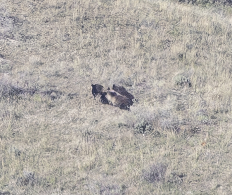 At one point she nursed the cubs while lying on her back. This is a heavily cropped image taken from a distance of about a mile.