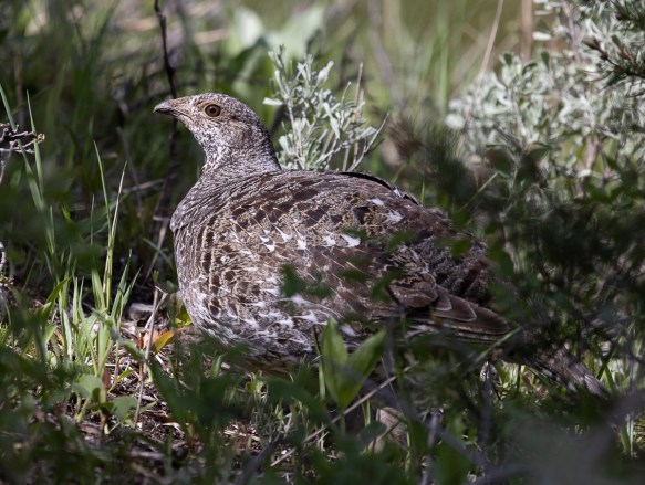 The trail passed through so many different habitat types and the cool shade of the trees was welcome as the afternoon wore on. As we walked along a sloping ridge dotted with Douglas fir and sagebrush, Melissa saw something move as I passed a shrub. We stopped and I spotted a dusky grouse!