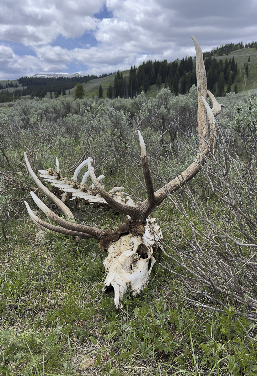 We encountered a few people not far into the trail including a couple of hikers and two groups of horseback riders with outfitters. But for the most part it was just us and the scenery. We did run across a bull elk carcass that looked as though it might have been from this past spring/winter (still hair on the carcass, the contents of the rumen was scattered nearby and there are still insect larvae on the skeleton). It was an impressive animal.