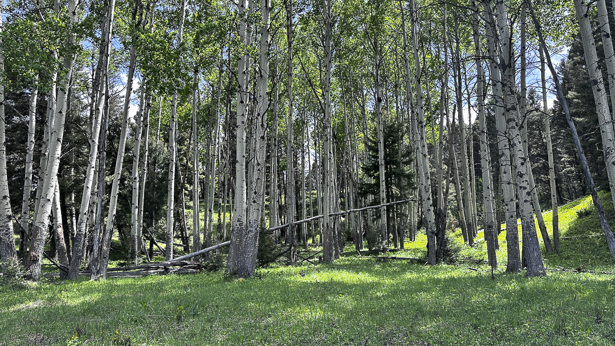 We both love aspen groves and so we were thrilled to come upon a small stand of tall aspens. Our friend, Dan, taught us long ago that aspens are hot spots for wildlife activity, especially cavity nesting birds. We did spot a woodpecker in the trees but weren’t sure which species. More on that later.