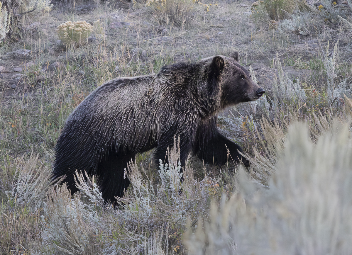 On one of my early visits I saw a group of people on the bridge as I approached my parked car. I figured it could be either otters in the river or perhaps a black bear. One person saw me walking towards them and motioned for me to look to my right. I couldn’t see anything because of a slight hill between my vantage point and the river. She then said, “bear”. I asked if it was a black bear or a grizzly. The reply – grizzly! So, I moved off the path and headed to my left and quickly joined the group on the road and saw a beautiful grizzly wandering along the river eating berries as it went. The bear then climbed the hill and crossed over the path I had been walking just minutes before. The crowd moved towards their vehicles or the other side of the bridge and the bear eventually managed to cross the road and disappear behind a ridge along the river.