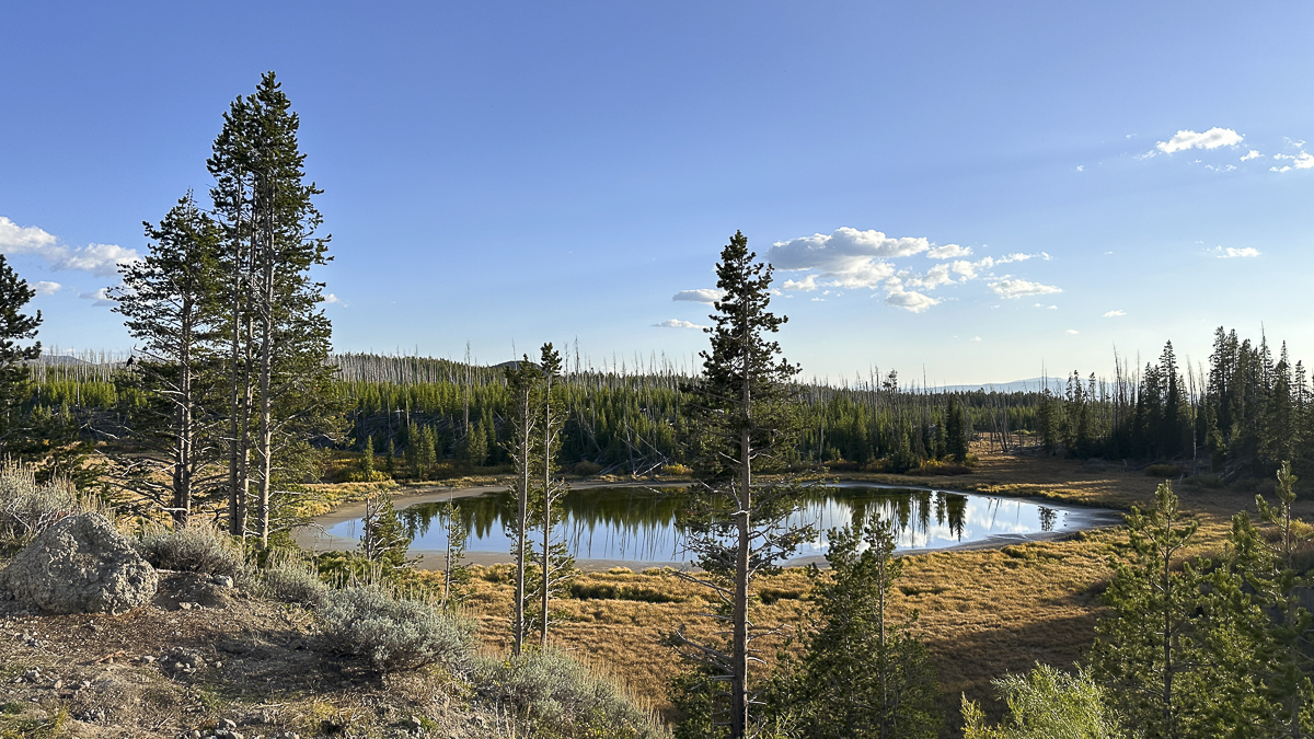 The marshy pond where the elk carcass and grizzly drama played out (click photos to enlarge)