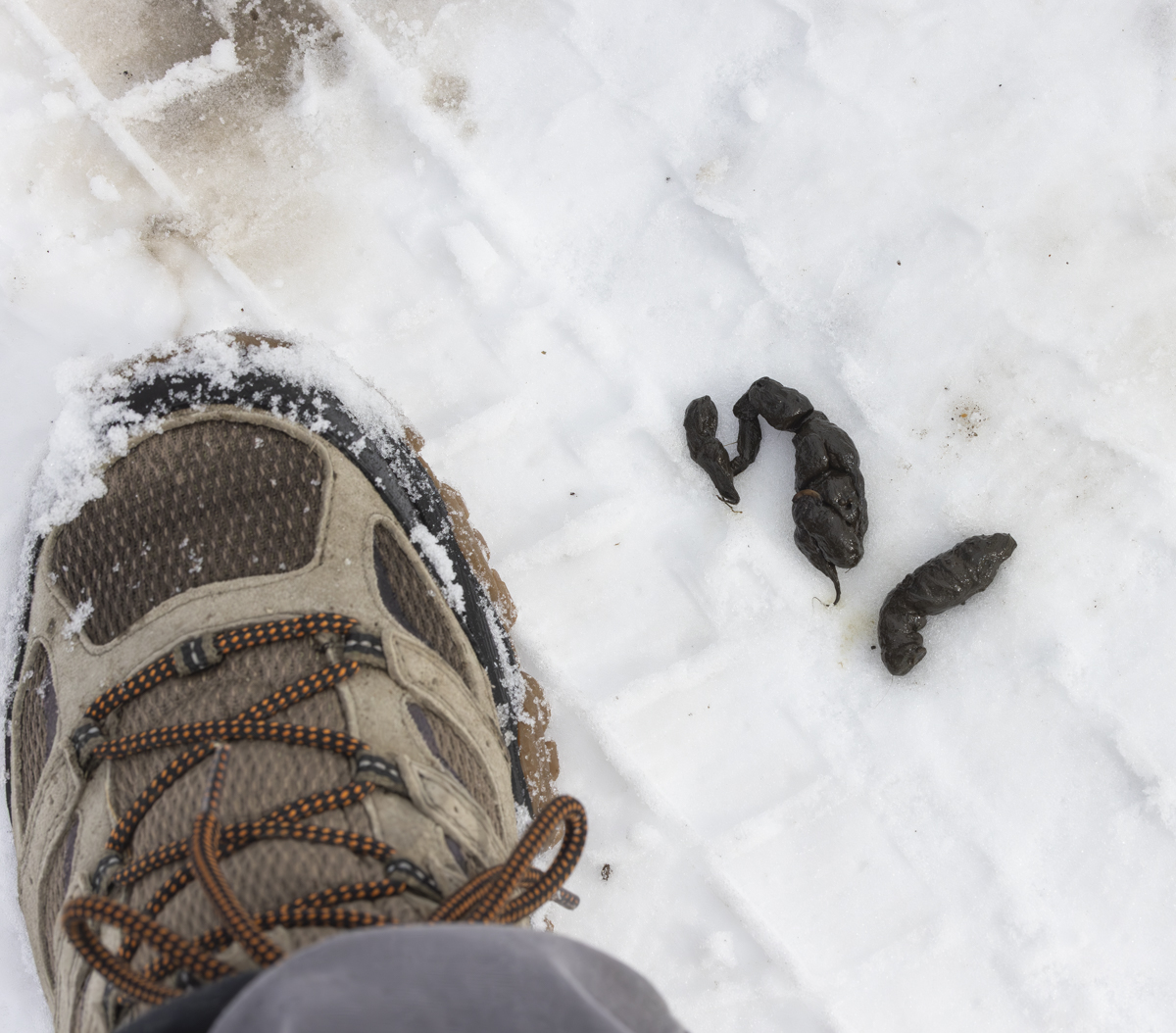 It turned and walked down the road a bit and then hunkered and deposited some scat in the road (perhaps making some statement about our proximity?). Well, it’s not often you get to look at fresh scat so after the fox trotted away we walked over and, of course, took a photo (don’t worry, we usually don’t have this on the itinerary for guests).